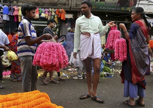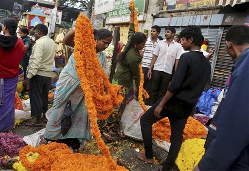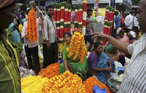 A Bangalore, in India, ci si prepara a festeggiare Ugadi, il nuovo giorno dell'anno secondo il calendario lunare indiano del Sud, acquistando fiori in un mercato all'ingrosso (foto Ap).