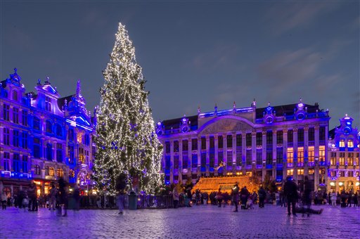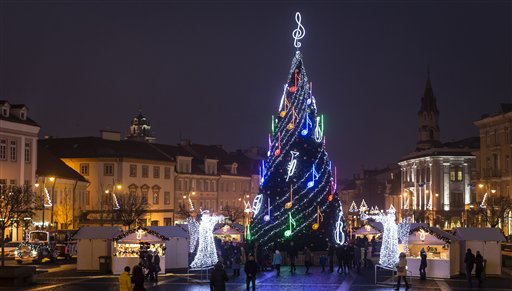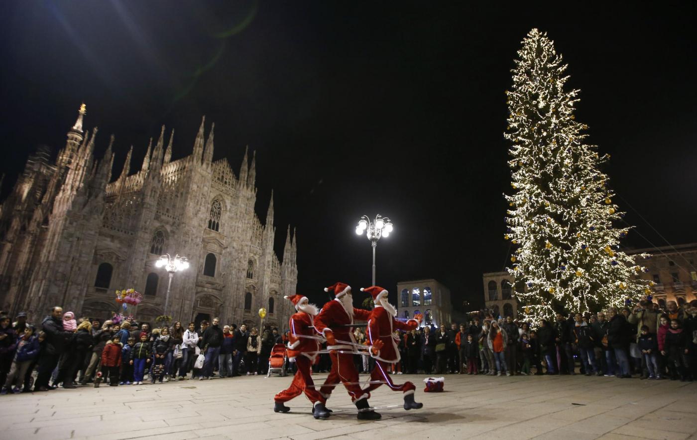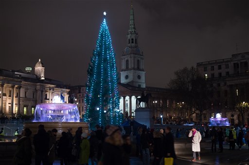 Una carrellata di alberi addobbati a festa nel mondo: a Madrid (Puerta del Sol), a Betlemme, a Milano, alla Casa Bianca, a Bruxelles, a Vilnius in Lituania e a Londra, aTrafalgar Square (foto Ap/LaPresse).