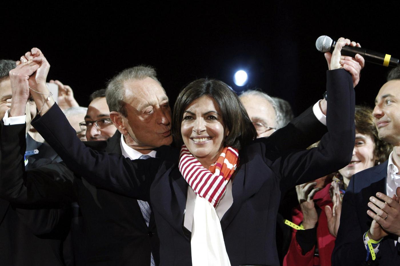 Parigi, Francia, la candidata socialista Anne Hidalgo eletta sindaco festeggia il risultato del voto (foto LaPresse).