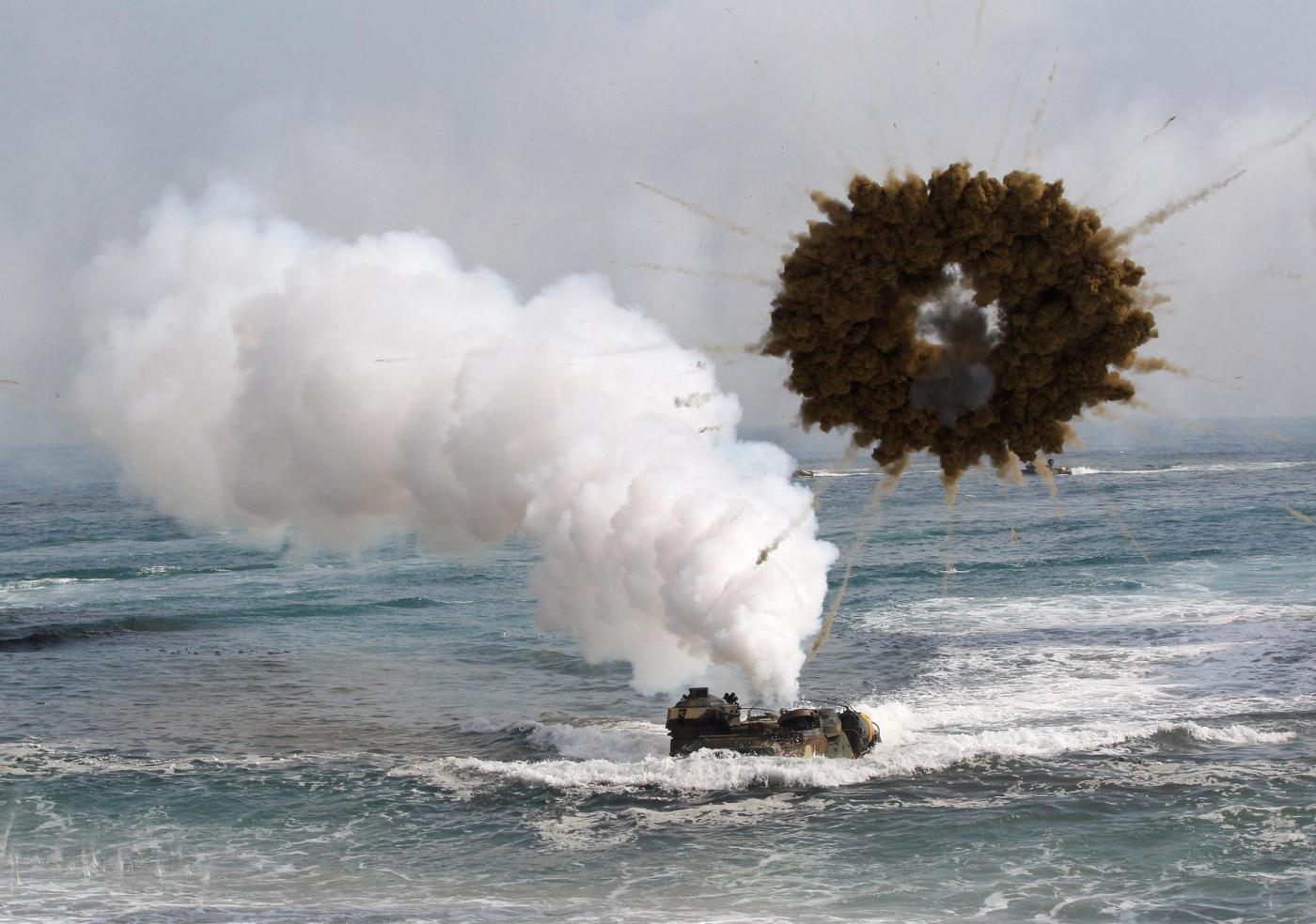 Pohang, Corea del Sud, annuale esercitazione militare congiunta fra esercito di Seul e Usa.