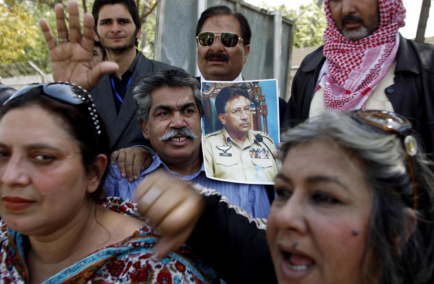 Islamabad, Pakistan, sostenitori di Musharraf protestano contro la condanna per alto tradimento inferta all'ex presidente.