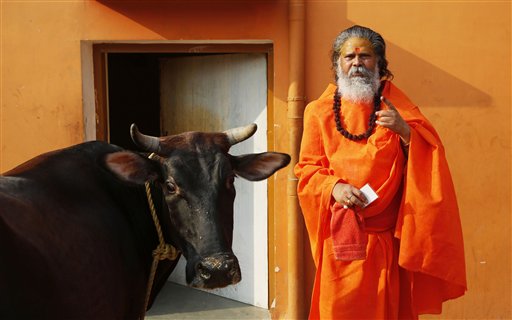 Allahabad, India, un indù mostra il segno di inchiostro sul dito dopo il voto.