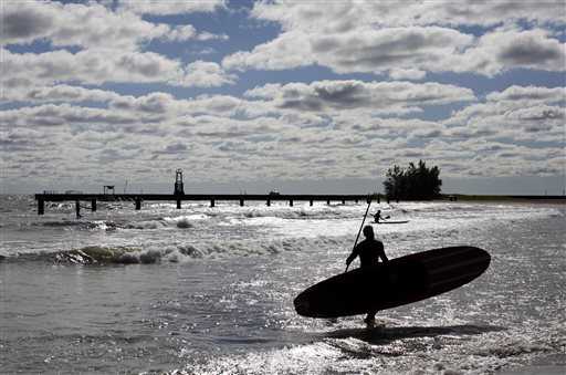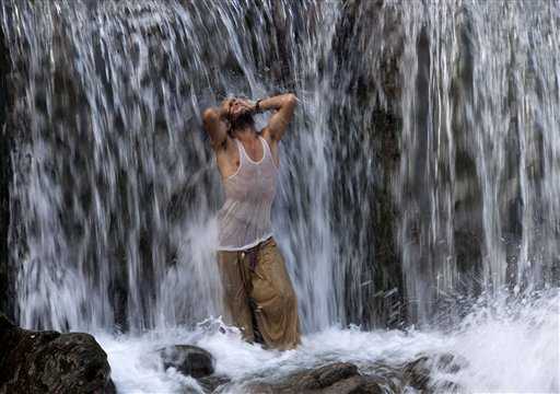 Un uomo cerca sollievo al gran caldo rinfrescandosi sotto una cascata a a Islamabad, in Pakistan. Un venditore di carbone si riposa nell'attesa dei clienti a Nairobi, in Kenya. Alla mostra floreale organizzata per celebrare i sessant'anni dalla fine della guerra coreana a Pyongyang, nel Nord Corea, fiori e armi fanno bella mostra di sé negli spazi dell'esposizione. Due figure in bilico su un'asse posta su un tetto: fanno un gioco pericoloso? No, fanno parte di un'installazione in alluminio di Hubertus von der Goltz chiamata "Incontri e posizioni" e realizzata a Berlino, Germania. Uno sportivo si appresta a fare surf sul lago Michigan, Chicago.