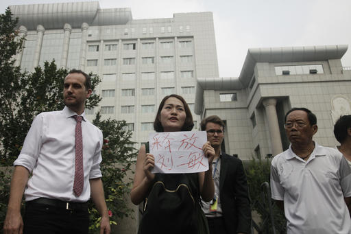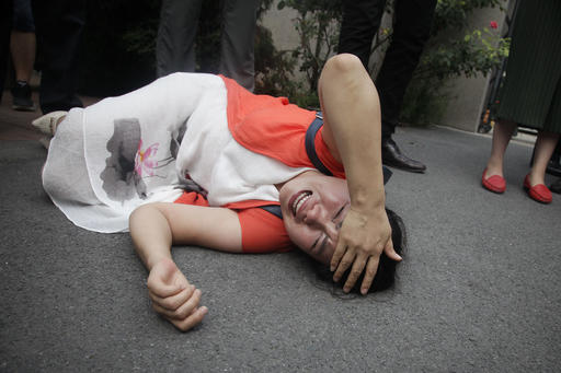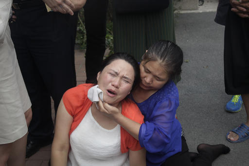 Li Wenzu, Liu Ermin, Yuan ShanShan e altre donne protestano per l’arresto dei loro mariti. Wang Quanzhang, avvocato cinese in primo piano nella lotta per i diritti umani, e altri attivisti, sono stati recentemente accusati di sovversione ed arrestati a Tianjin in Cina. Anche altri avvocati sono in carcere. Secondo le mogli le autorità cercano di tenere segrete queste azioni (AP Photo / Gerry Shih)