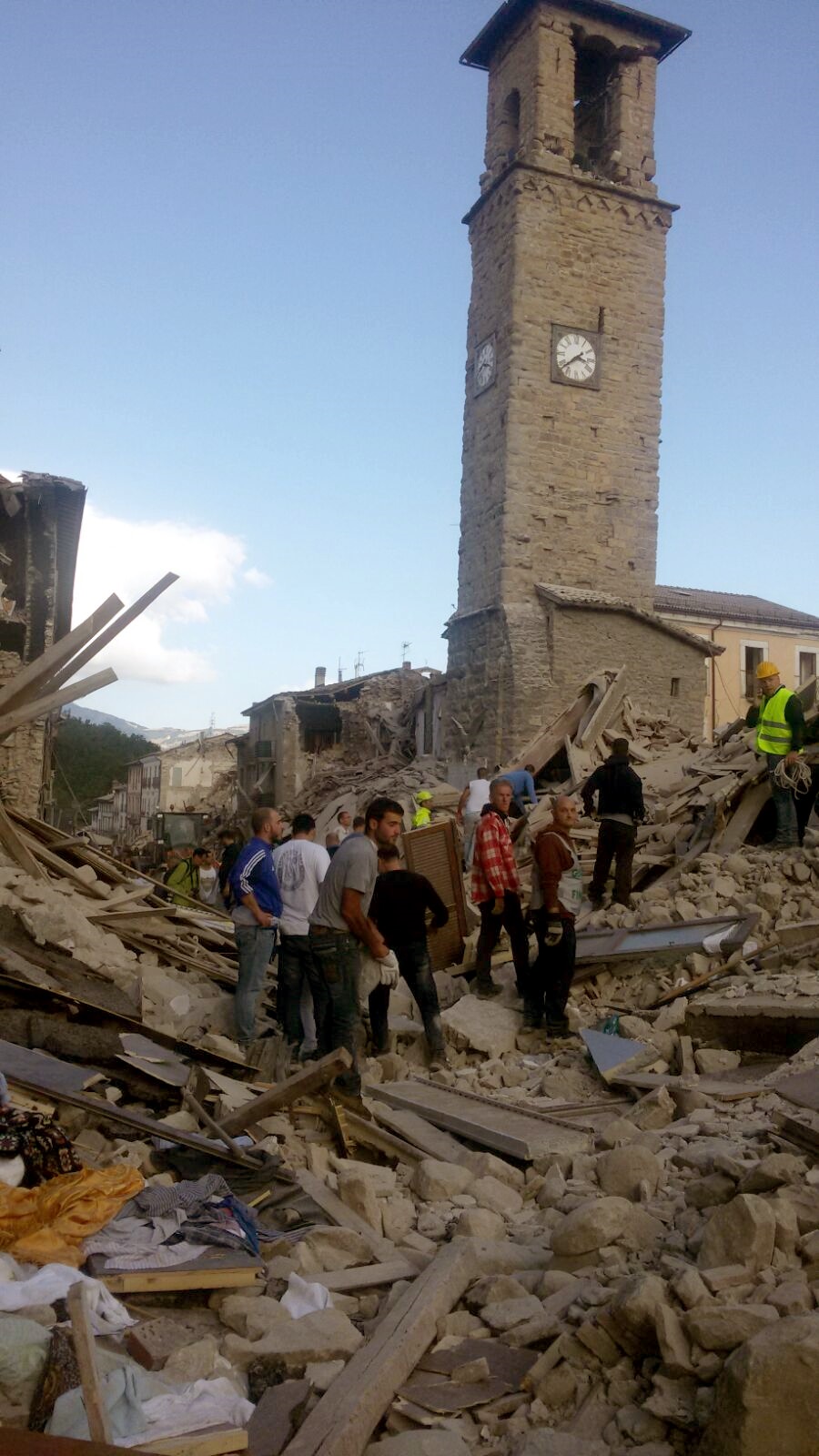Una carrellata di foto da uno dei paesi investiti dal sisma che ha colpito, nella notte tra il 23 e 24 agosto 2016, alcune zone dell'Italia centrale. Si tratta di uno sguardo che ci arriva in tempo reale da Umberto Paciarelli, grafico della redazione di Città Nuova, da sempre in prima linea nel servizio volontario nei casi di emergenza. Arrivano, intanto, molte testimonianze dirette dai luoghi interessati dal terremoto in una fase in cui i dati sono ancora incerti nonostante i soccorsi siano partiti celermente con un concorso di solidarietà immediata. All'ospedale di Rieti si è formata una lunga fila di donatori di sangue.