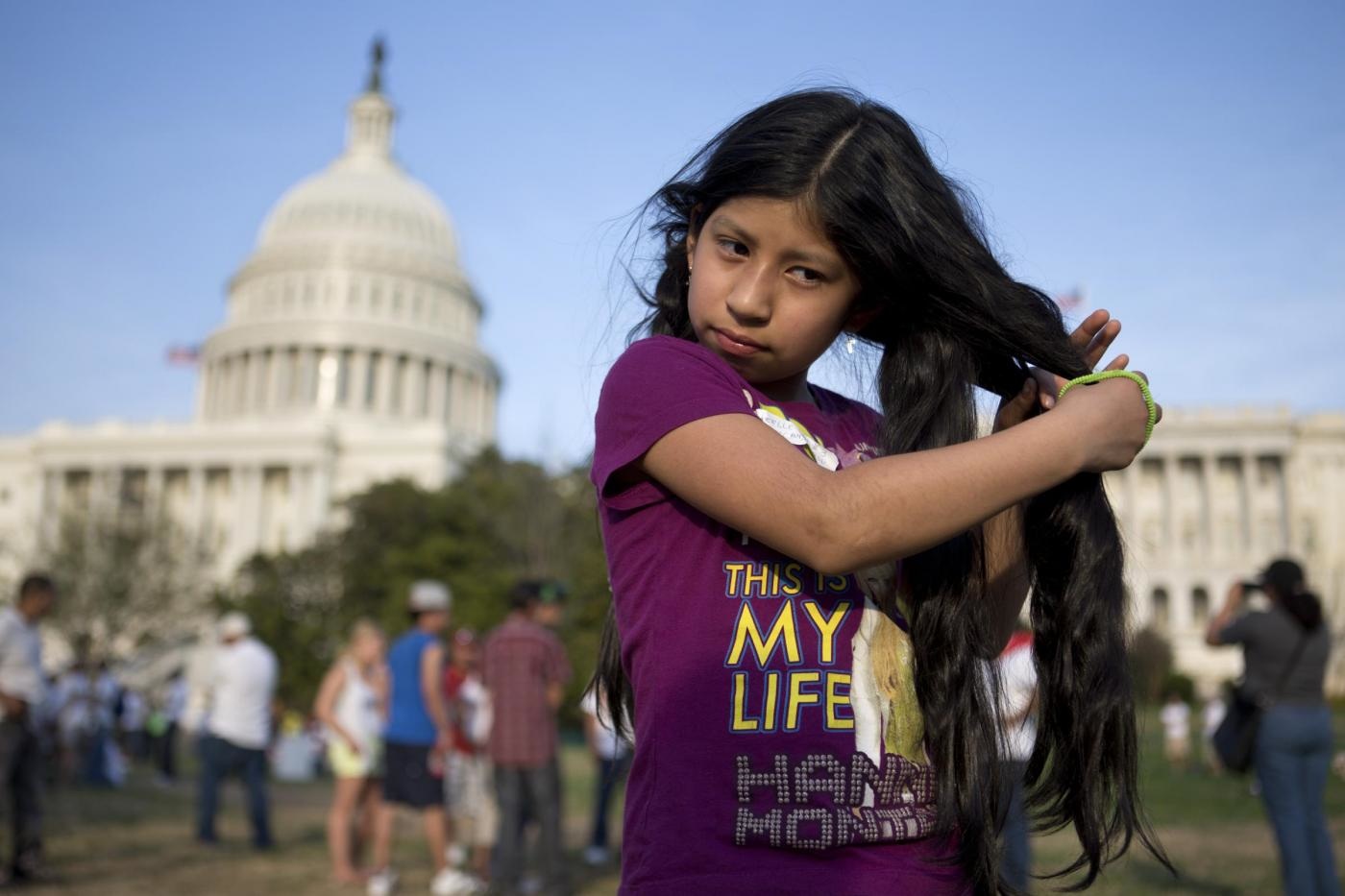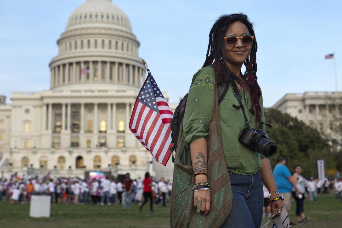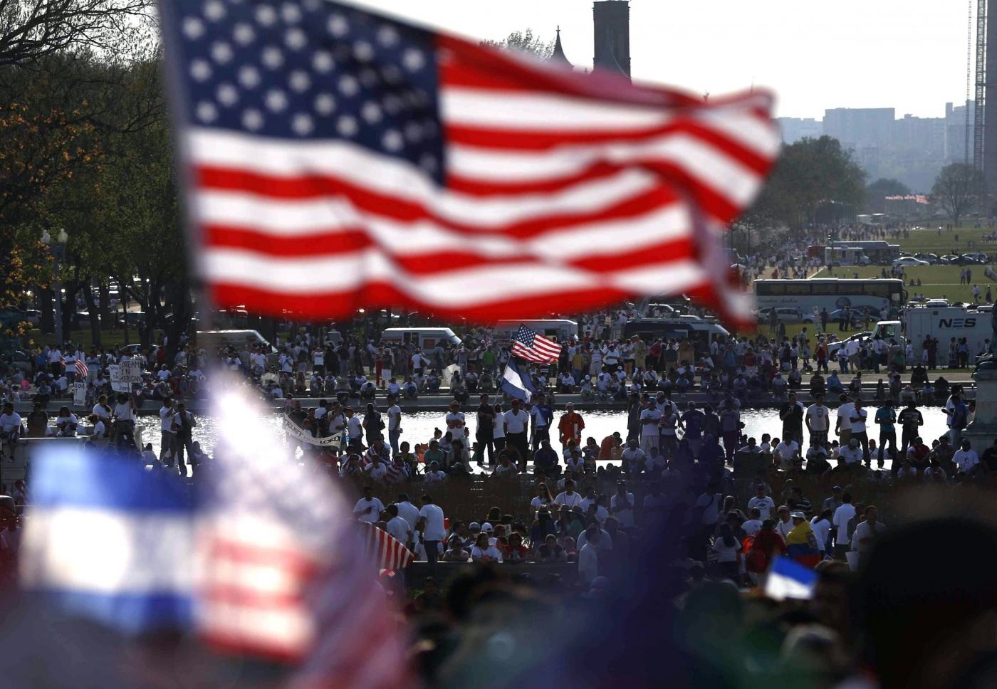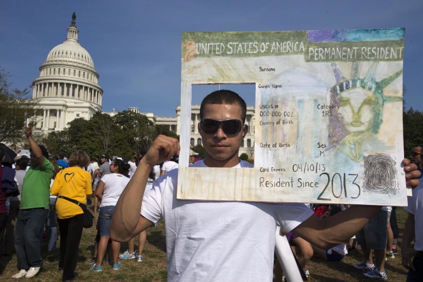 Migliaia di immigrati provenienti da diverse parti degli Stati Uniti si sono radunati a Washington e hanno manifestato per chiedere un cambiamento della legge sull'immigrazione. Sono 11 milioni le persone che, pur vivendo, lavorando e studiando da anni nel Paese, non godono ancora della cittadinanza americana (foto Ap).