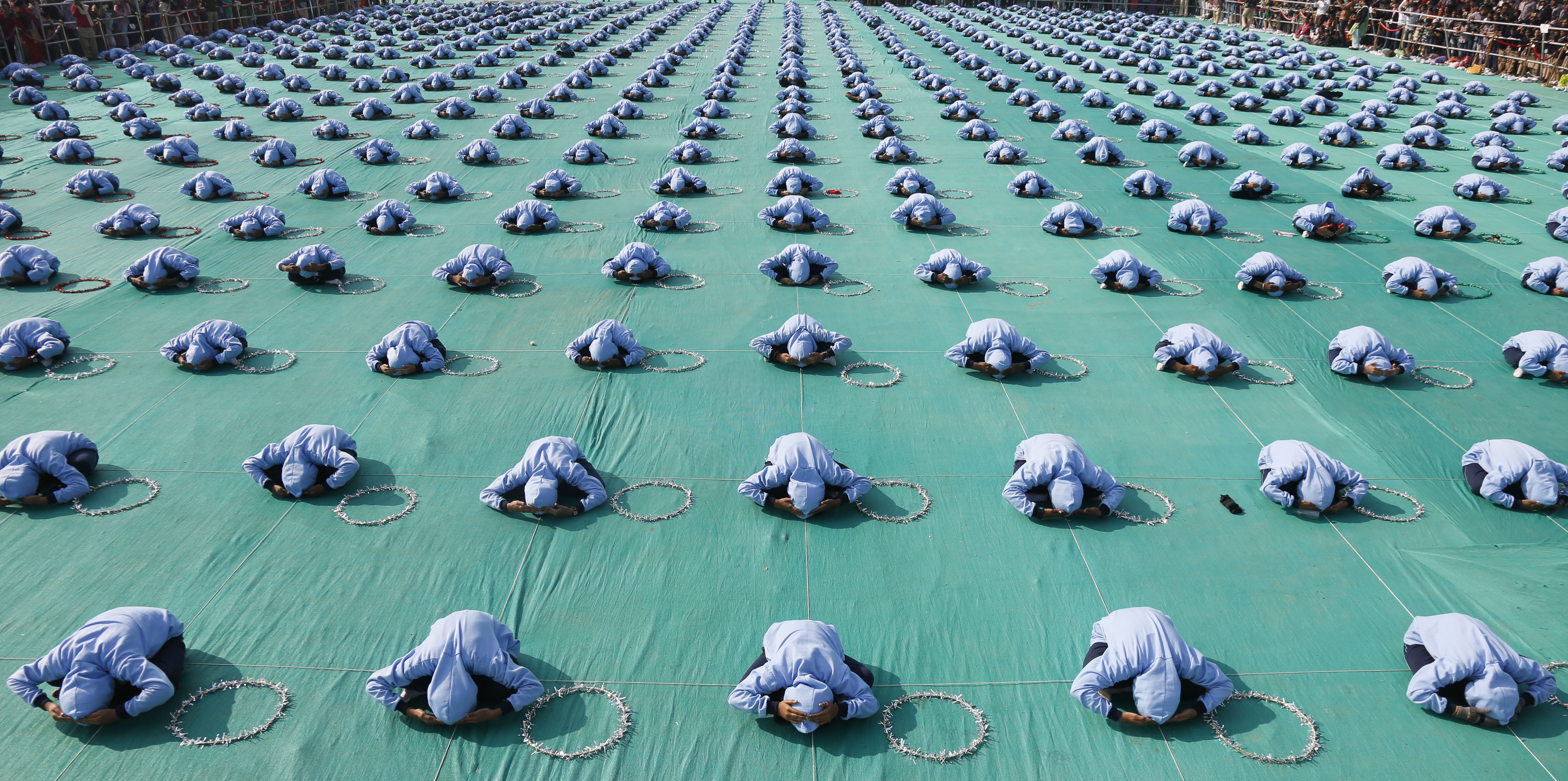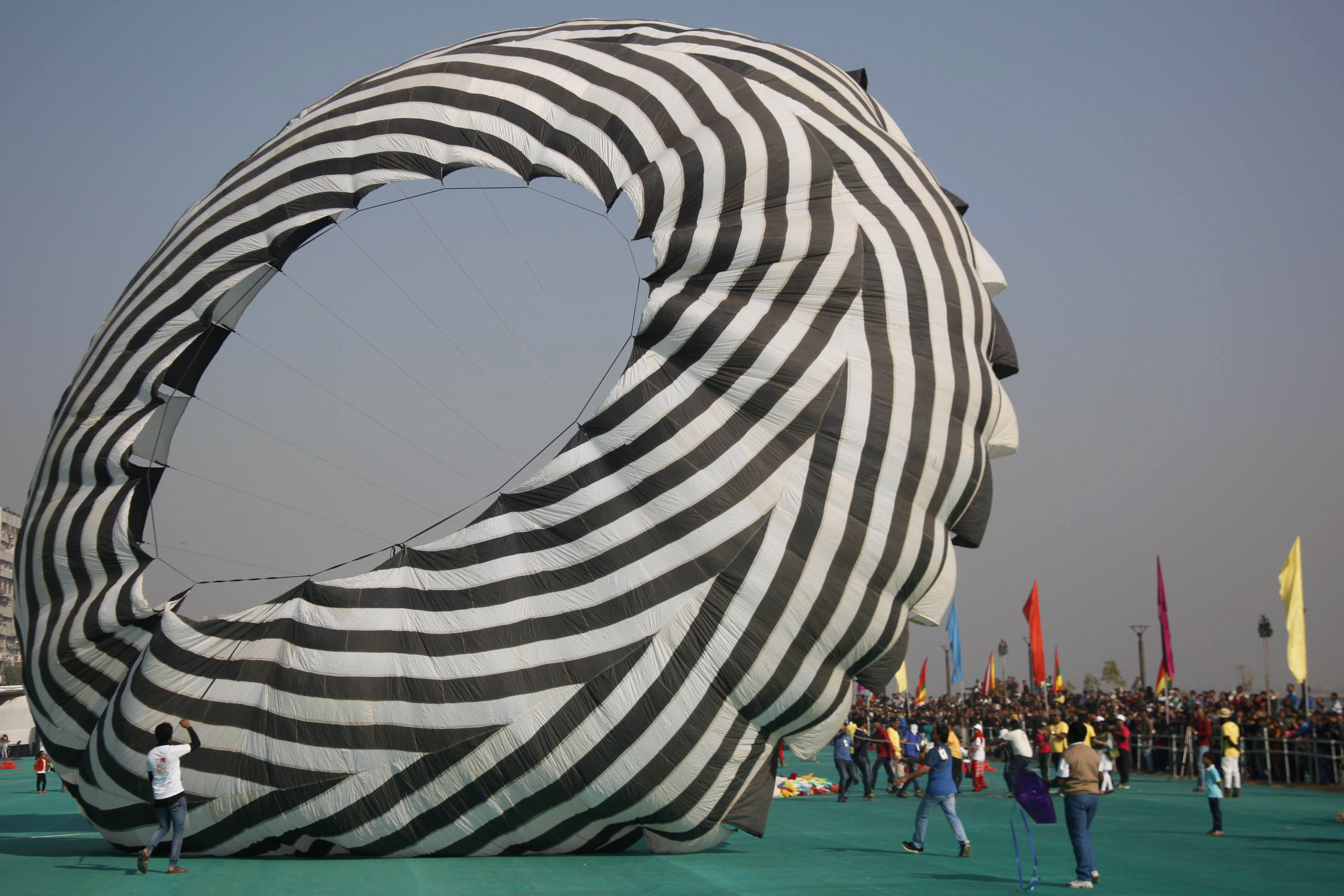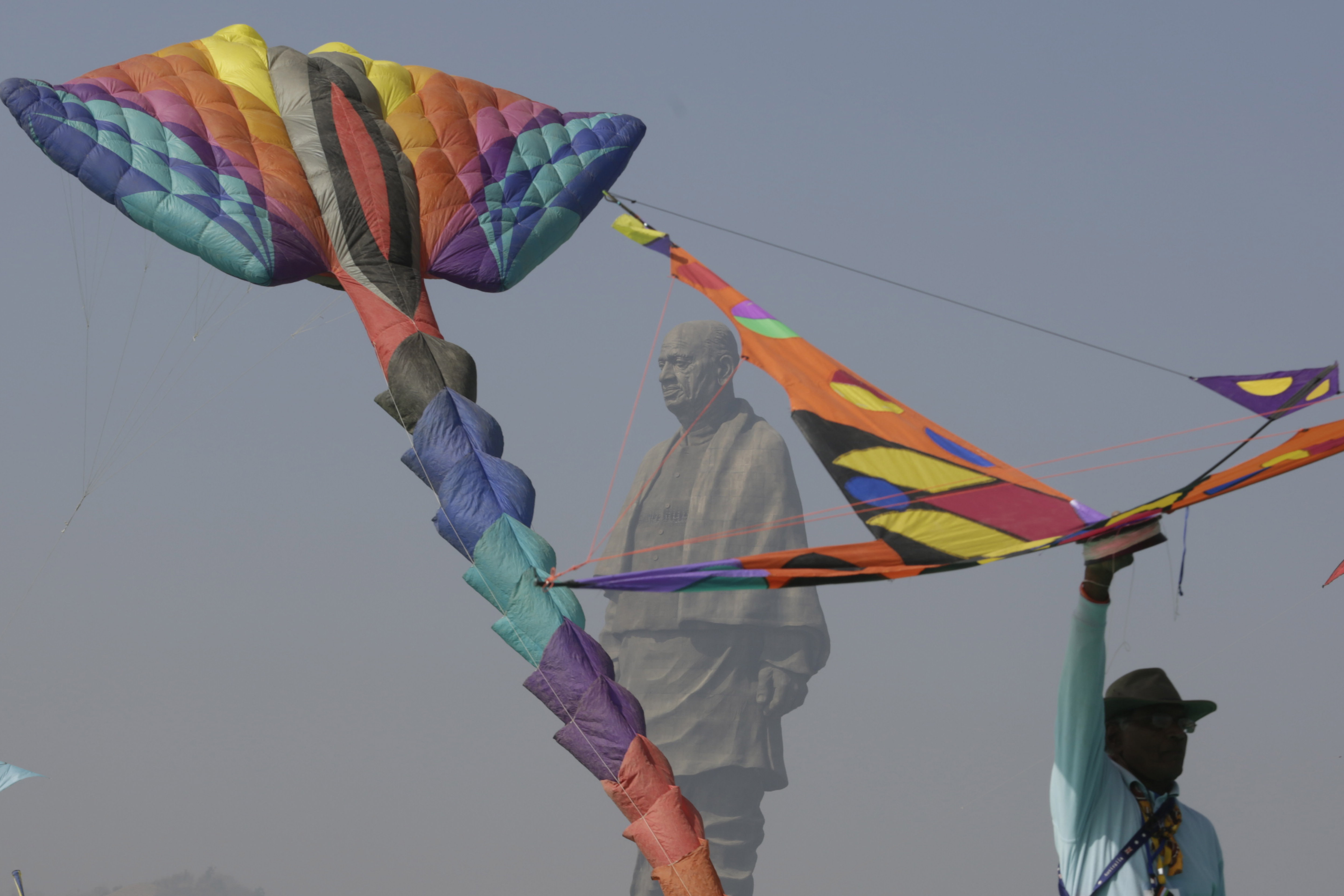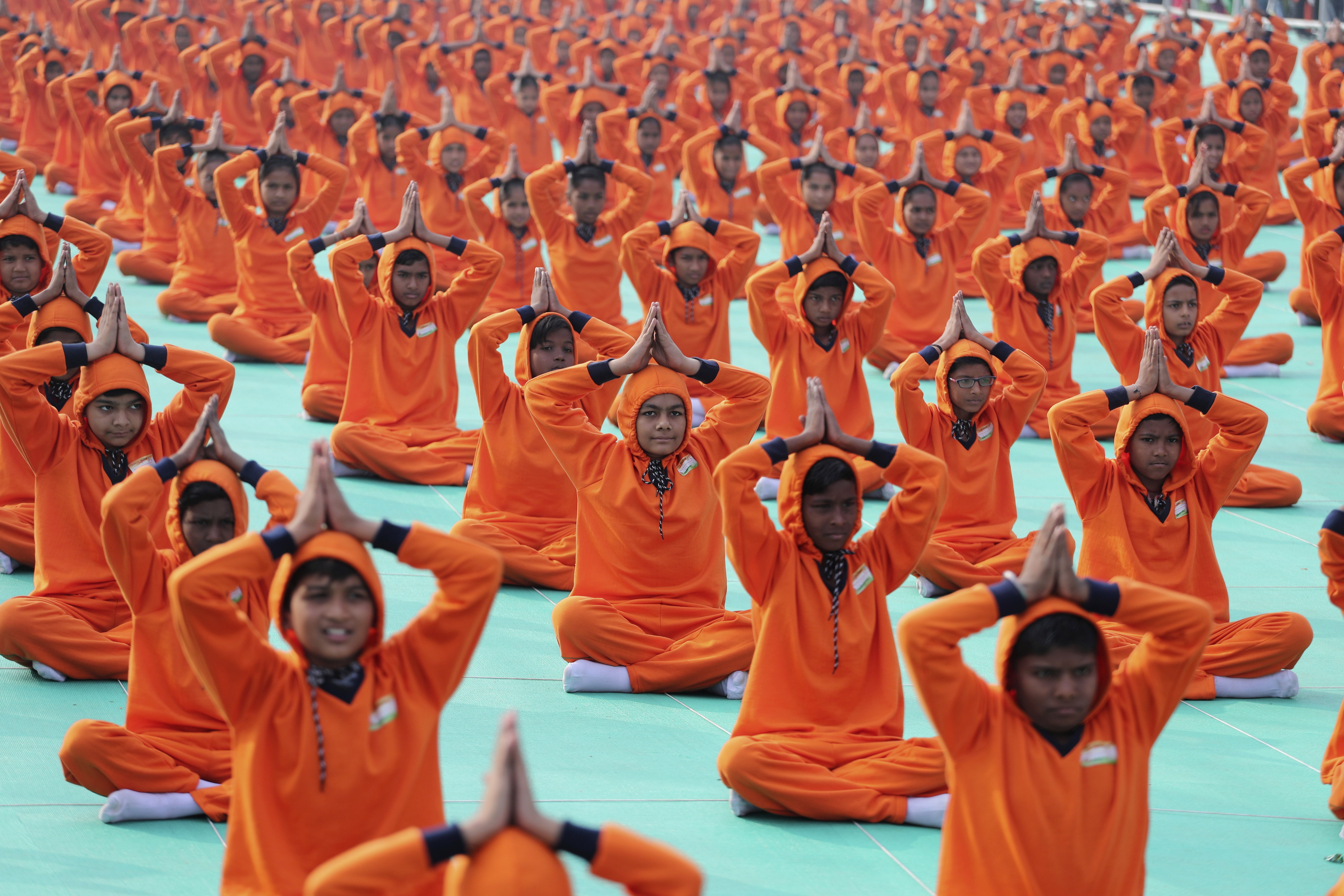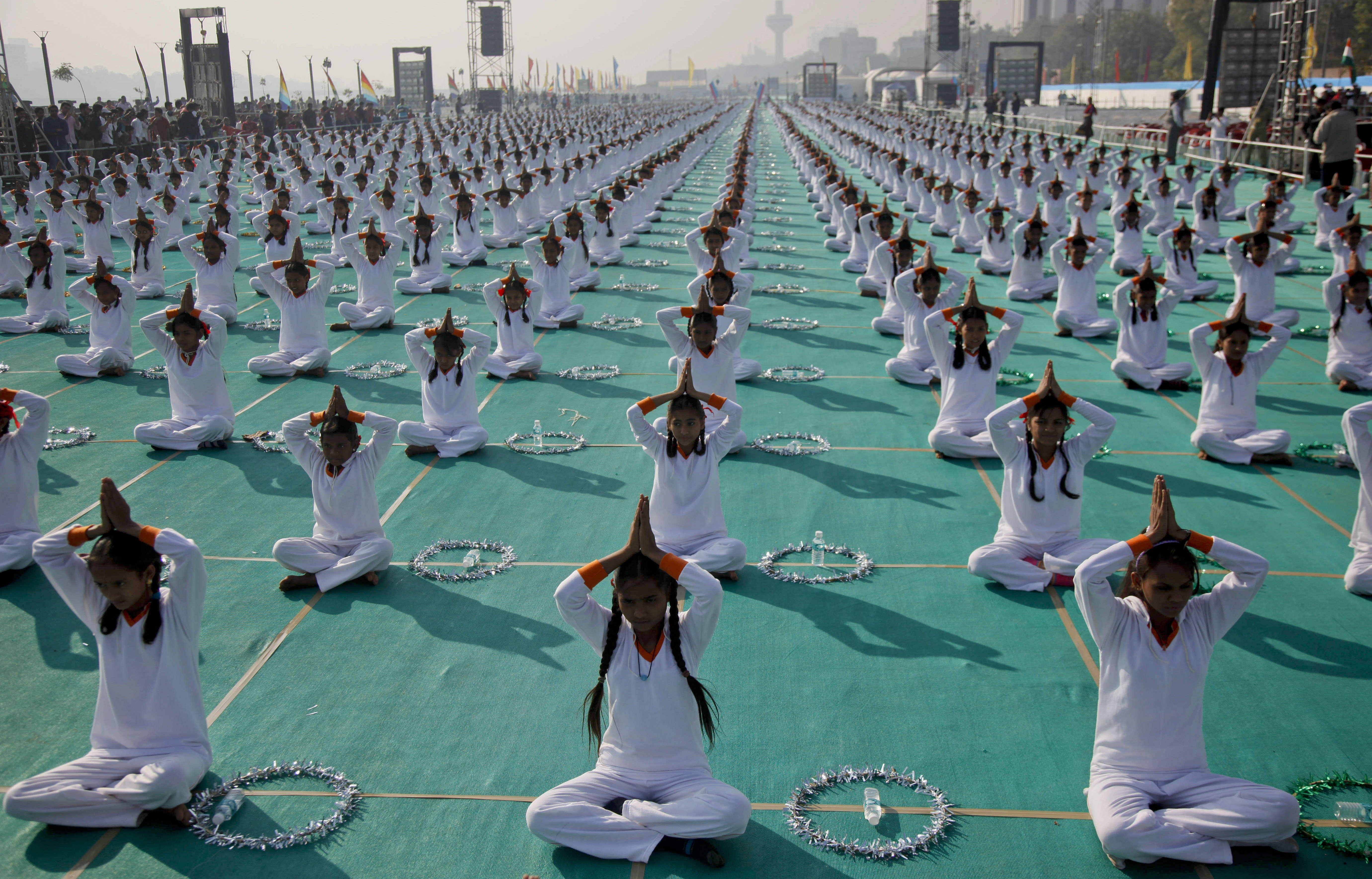 Come ogni anno, in questi giorni sul lungofiume Sabarmati ad Ahmadabad si svolge il festival degli aquiloni provenienti da tutta l’India, oltre che dall’estero. I bambini delle scuole indiane eseguono yoga durante l’inaugurazione del festival internazionale.