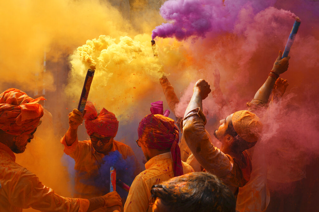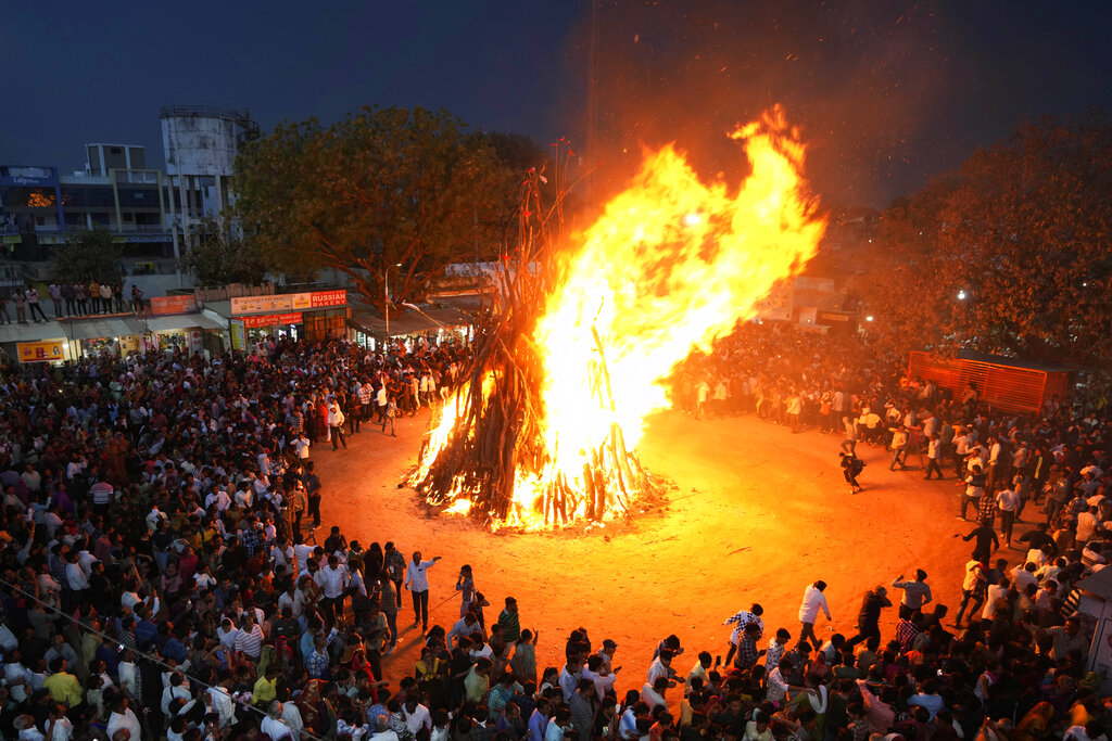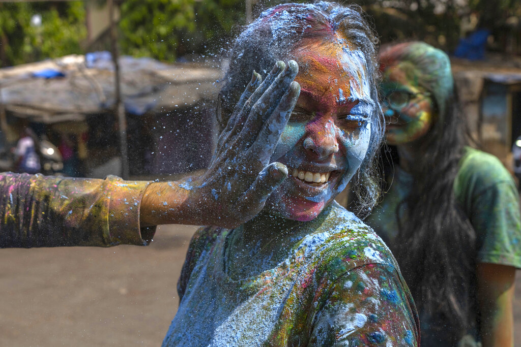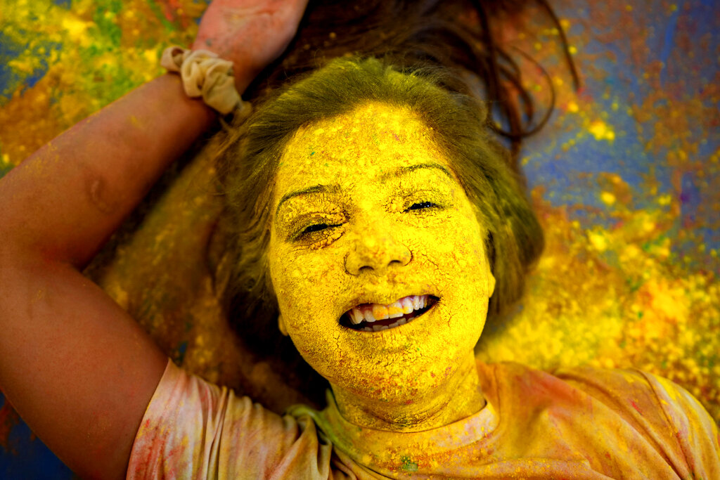 La festa si inaugura la notte prima, il giorno di Jalanewali Holi, con l’accensione di un falò chiamato Holika Dahan, in riferimento appunto alla leggenda. Il giorno dopo, il Rangwali Holi, esplode la festa vera e propria e le persone si riuniscono per giocare con polveri colorate, acqua, canti e balli in un’atmosfera gioiosa e carnevalesca. I colori hanno significati diversi, per esempio il rosso rappresenta amore e fertilità, il verde nuovi inizi mentre il giallo è visto come il colore della felicità e della pace. (AP Photo)