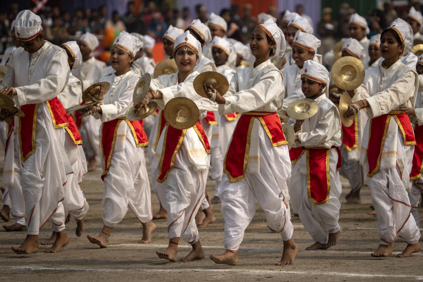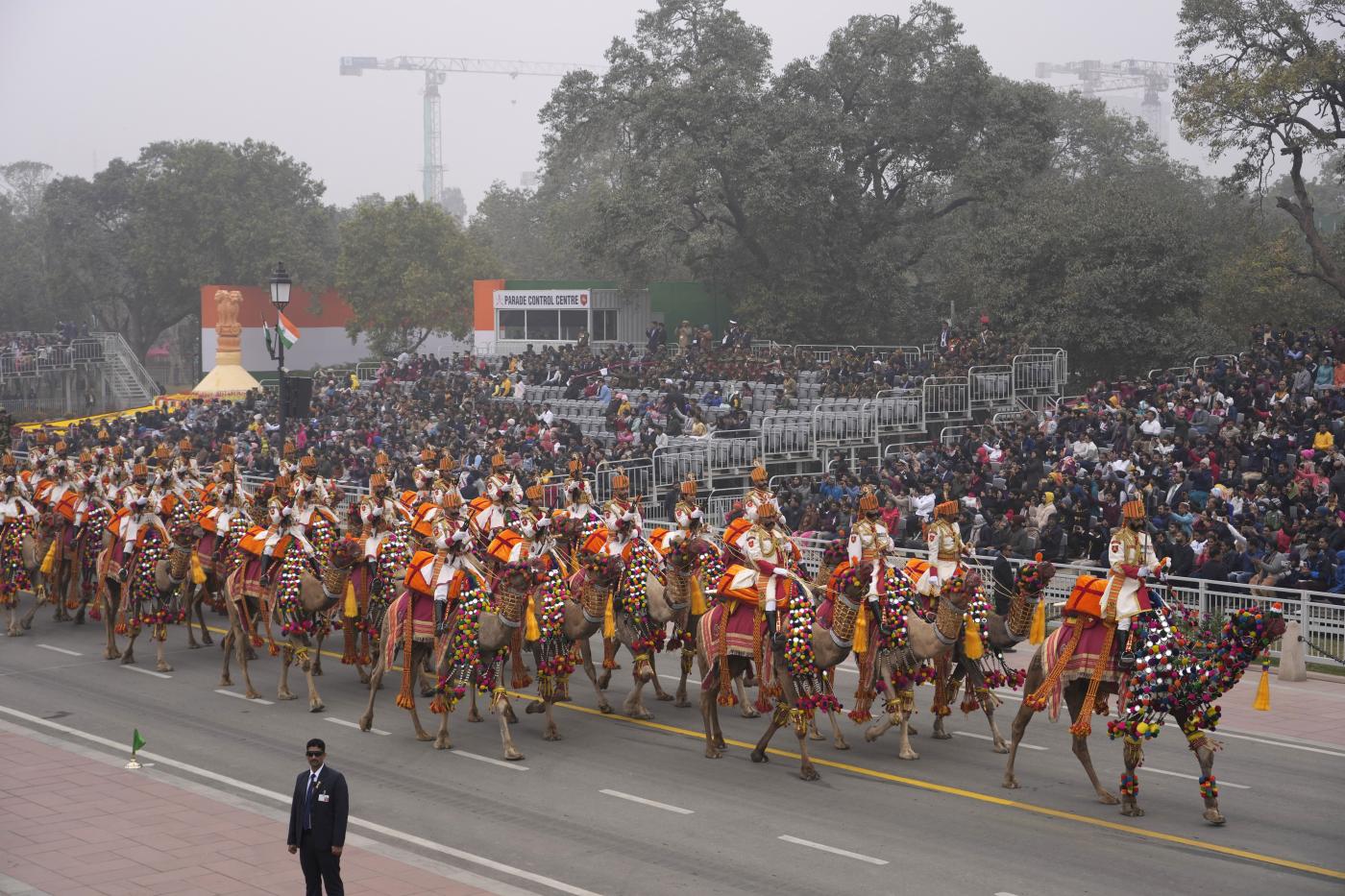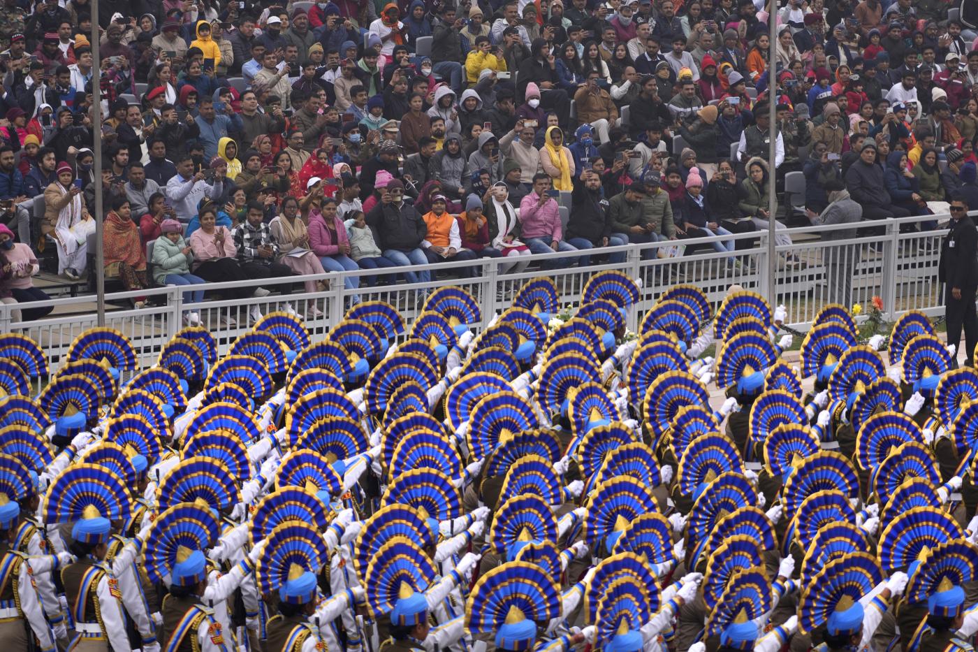 La festa dura tre giorni e prevede manifestazioni commemorative e folkloristiche in tutto il Paese, a cominciare dalla sfilata nella capitale Nuova Delhi, seguita in televisione e online da milioni di indiani. Ma anche e soprattutto per le strade: nonostante il freddo e la nebbia invernali del mattino decine di migliaia di persone sono accorse ad assistere alla sfilata dei coloratissimi carri ispirati alle tradizioni culturali di molti stati del Paese e alla marcia di tutti i corpi militari in livrea ufficiale e con le loro bande, a dimostrazione della capacità di difesa e del patrimonio culturale e sociale dell’India. (AP Photo)