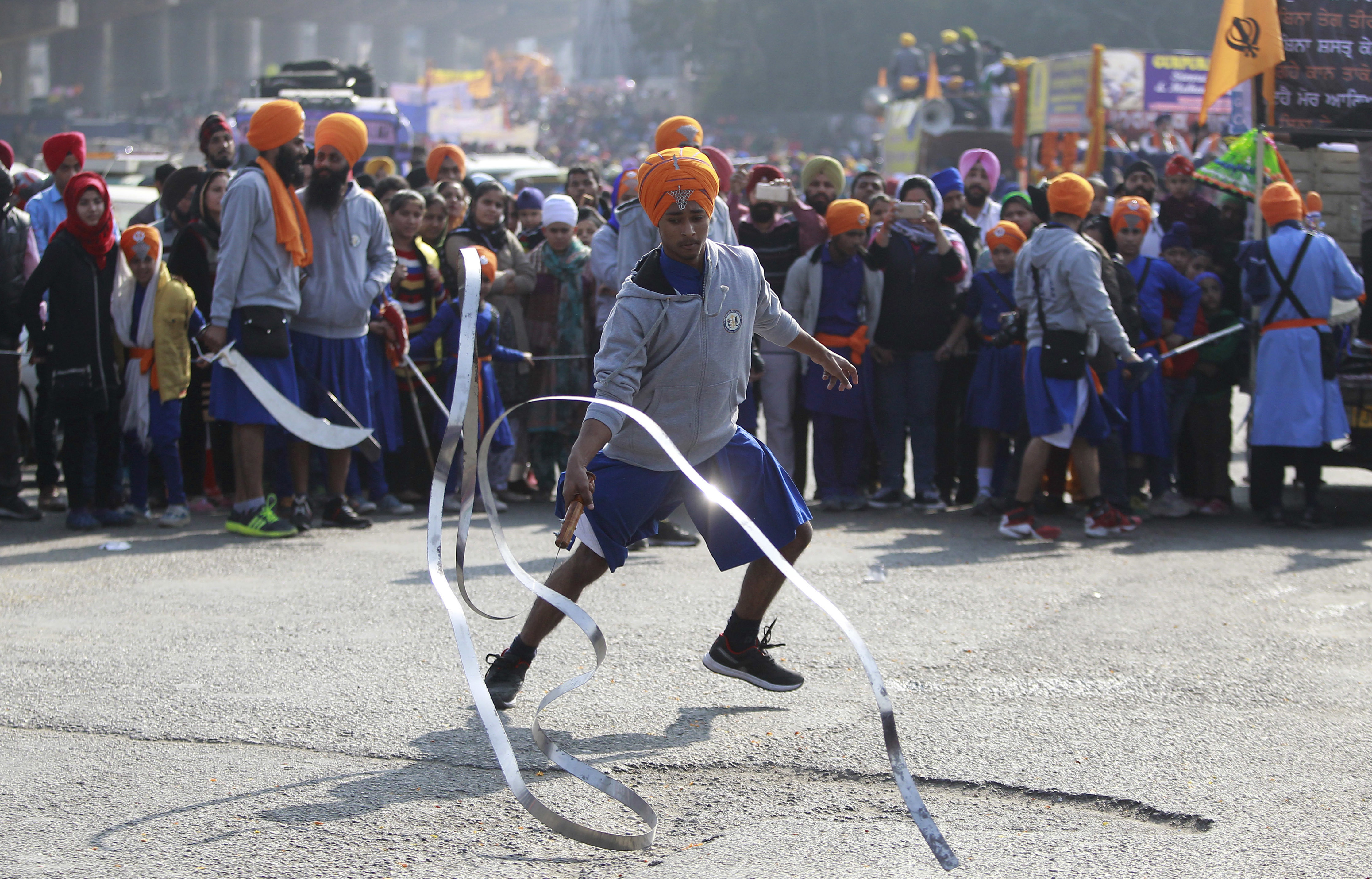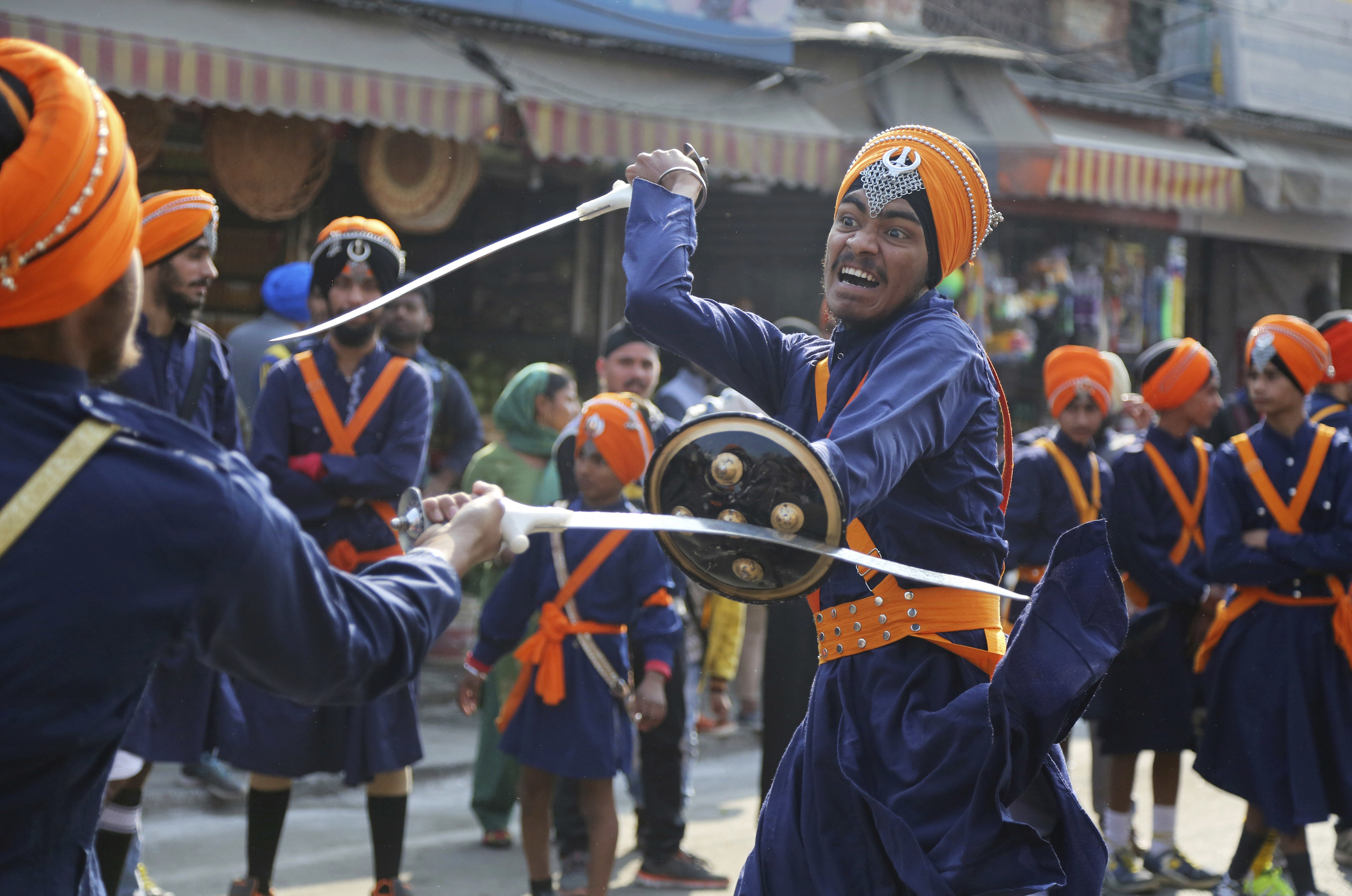 Festeggiamenti con danze e riti tradizionali per celebrare l’anniversario della nascita del guru Gobind Singh, il decimo guru sikh, l’ultima persona a ricoprire questo ruolo