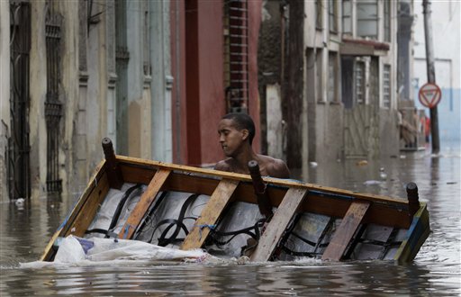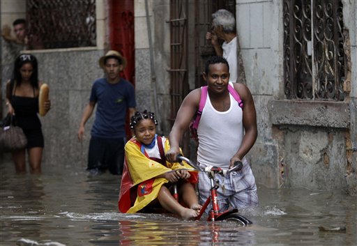Dopo ore di pioggia battente, alcuni isolati della capitale cubana si sono ritrovati sommersi d'acqua. Non è inusuale per i cubani affrontare situazioni di questo tipo durante la stagione delle piogge; in particolare, i mesi di settembre e ottobre sono i più piovosi di tutto l'anno e l'isola è spesso scossa da tempeste tropicali (foto Ap).