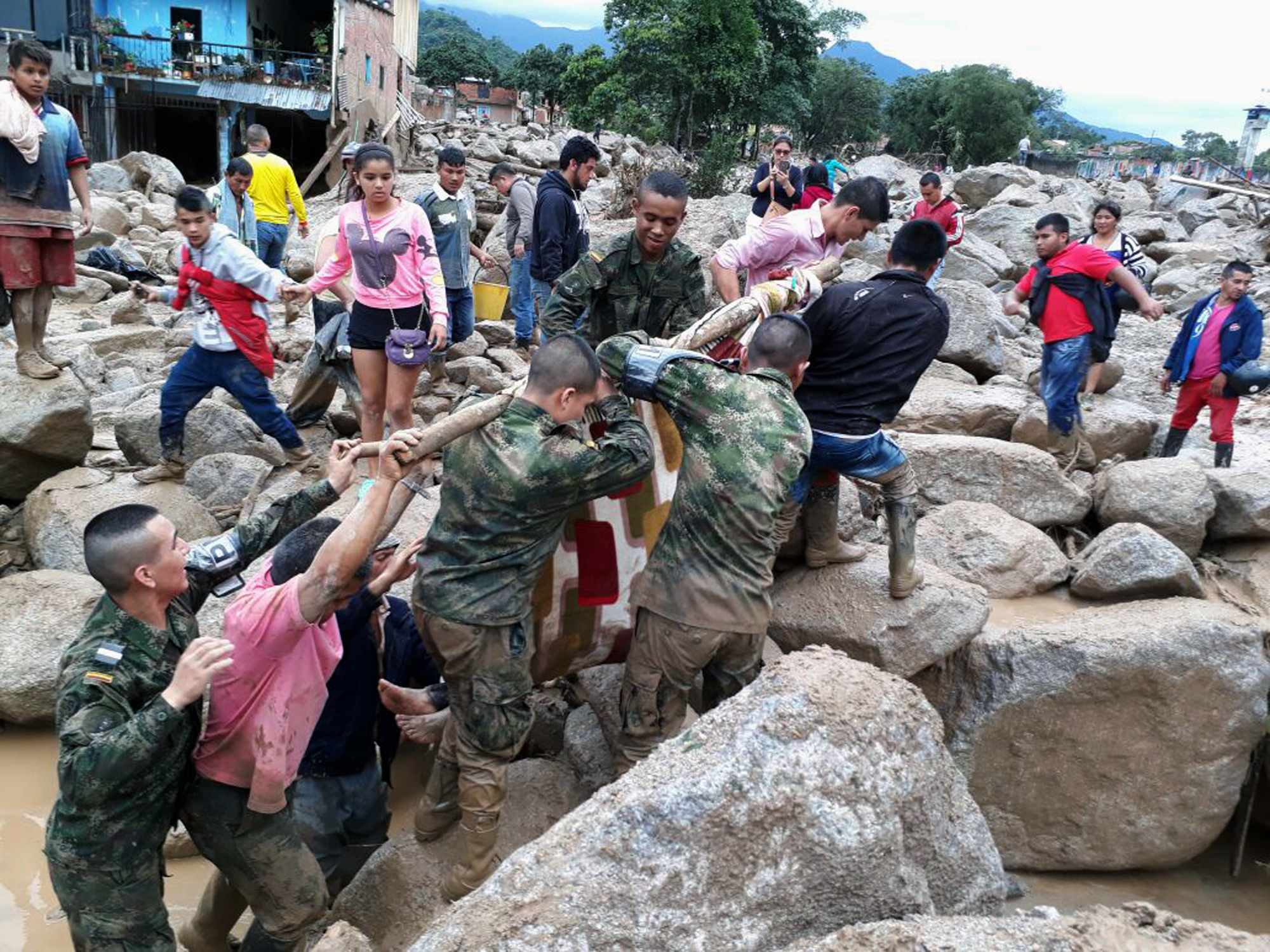 A causa delle fortissime piogge causate dal fenomeno atmosferico chiamato El Niño, alcuni fiumi sono esondati. Una valanga di acqua, fango e detriti ha investito e attraversato i centri abitati del sud della Colombia, uccidendo 200 persone e lasciando molti feriti e senza tetto. Le operazioni di soccorso si svolgono tra mille difficoltà