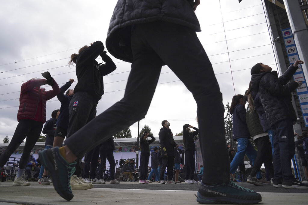 La scalatrice iraniana Elnaz Rekabi, 33 anni, è sparita per alcuni giorni dopo essere rientrata a Teheran dalla Corea del Sud. Lì aveva gareggiato per i Campionati asiatici di arampicata sportiva senza velo, poiché – aveva affermato – le era inavvertitamente caduto il foulard. Secondo una “fonte informata”, la Bbc Persian riporta che «le autorità hanno minacciato di sequestrare i beni della sua famiglia se non avesse rilasciato la dichiarazione», che quindi le sarebbe stata estorta forzatamente dopo essere atterrata all’aeroporto, dove una folla di sostenitori l’attendeva come un’eroina al suo rientro, ma non è chiaro dove sia stata portata. Intanto continuano le manifestazioni in tutto il Paese e nel mondo contro la repressione del governo che sinora ha causato 244 vittime, per lo più giovanissimi. Nelle foto, la reazione di altre atlete di arrampicata che hanno parlato alla Coppa del mondo di arrampicata in Jappone delle preoccupazioni per la situazione politica che attraversa il mondo dello sport in alcuni Paesi. (foto Ap)