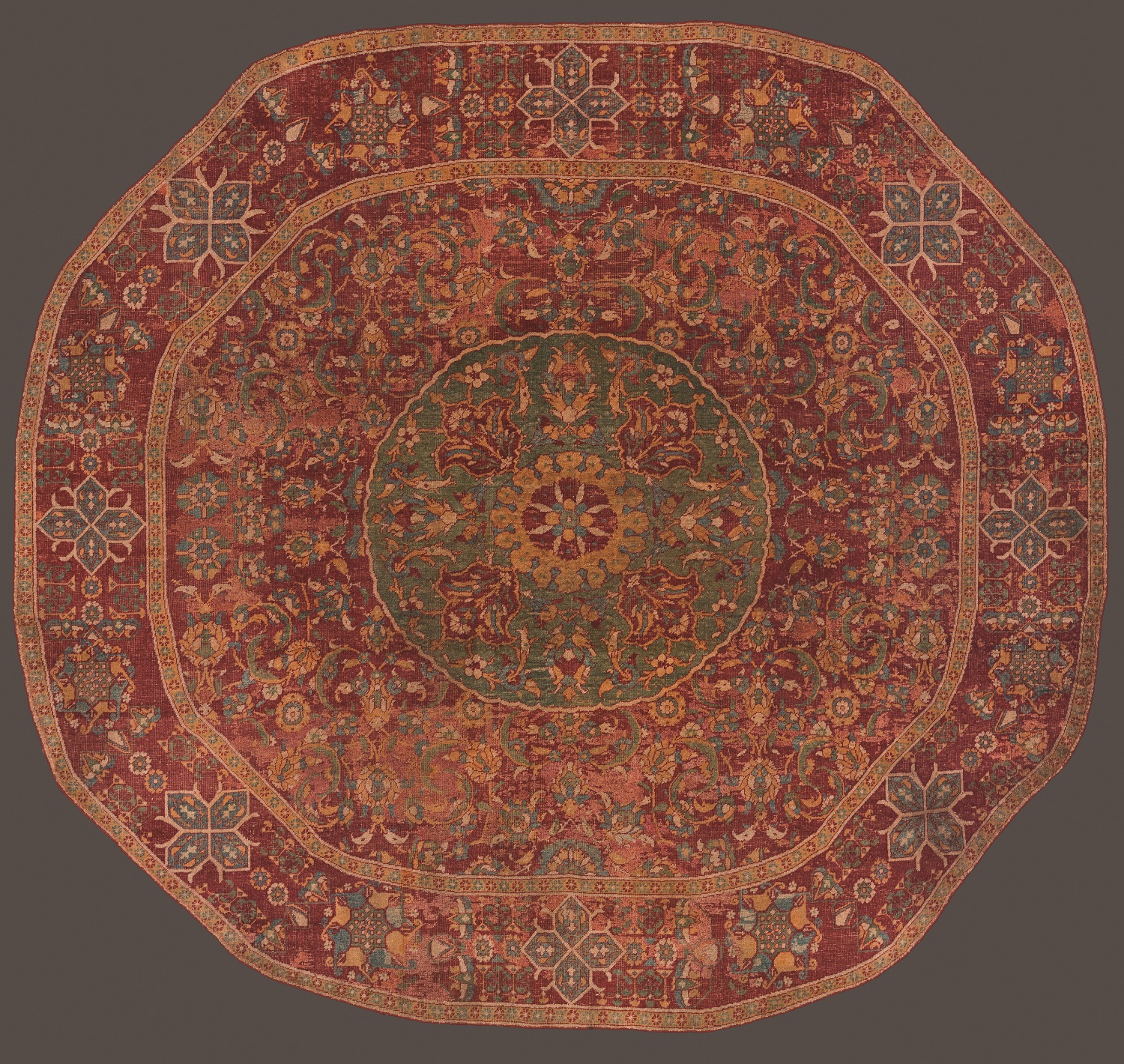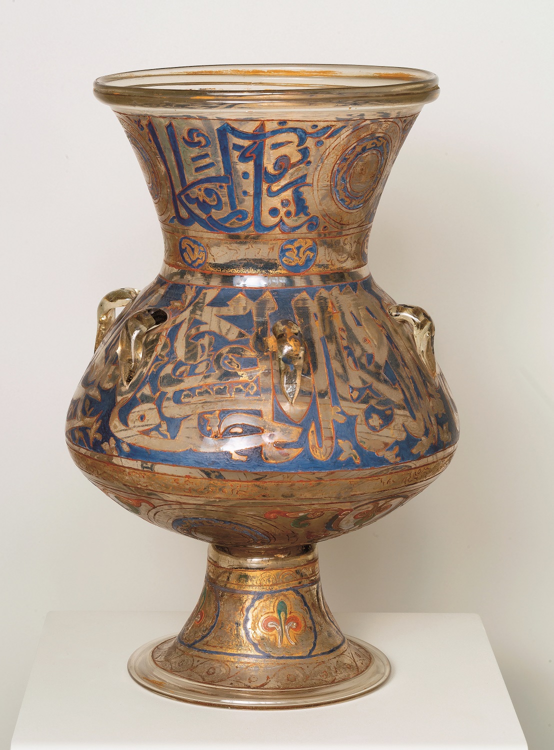 Protagonista dunque l’arte islamica con i suoi straordinari tappeti, i “mesci roba” e vasi “all’azzimina” ovvero ageminati (tecnica di lavorazione dei metalli per ottenere una decorazione policroma), i vetri smaltati, i cristalli di rocca, gli avori, le ceramiche a lustro: quelle in verità provenienti dall’Islam Occidentale, la Spagna; da noi chiamate majolica dall’ultimo porto di partenza, Majorca. Tutto ciò incarnava un mondo affascinante e ricco.