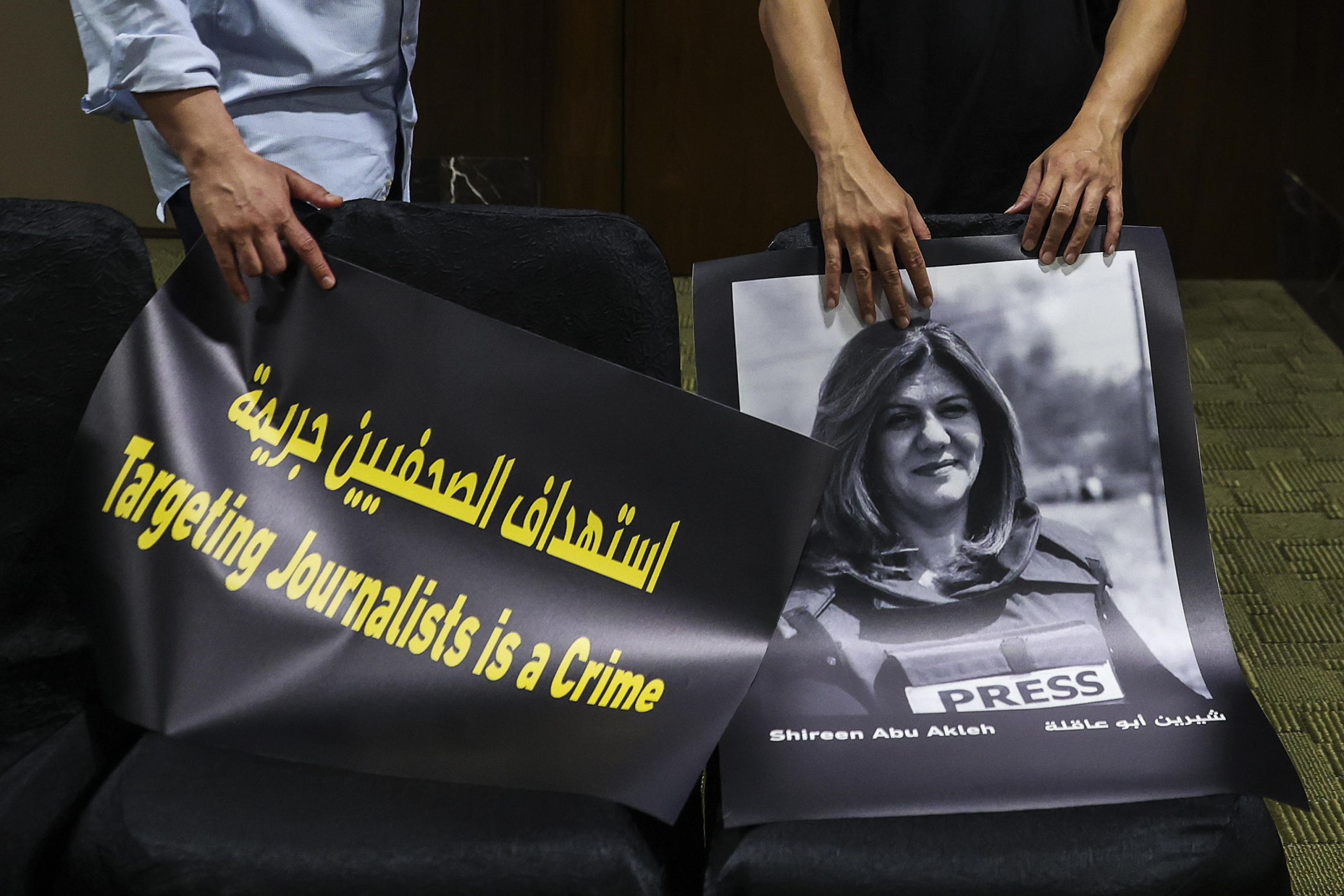 Nelle foto Ansa la chiusura dell’emittente televisiva e alcune immagini dei servizi trasmessi in questi mesi sul canale accessibile via satellite e sul web, ma raramente sulle fonti italiane. I militari hanno strappato via uno striscione dedicato a Shireen Abu Akleh, la giornalista di Al Jazeera uccisa nel 2022 dall’esercito a Jenin come accertato dall’indagine promossa dell’Alto commissariato delle Nazioni Unite per i diritti umani
