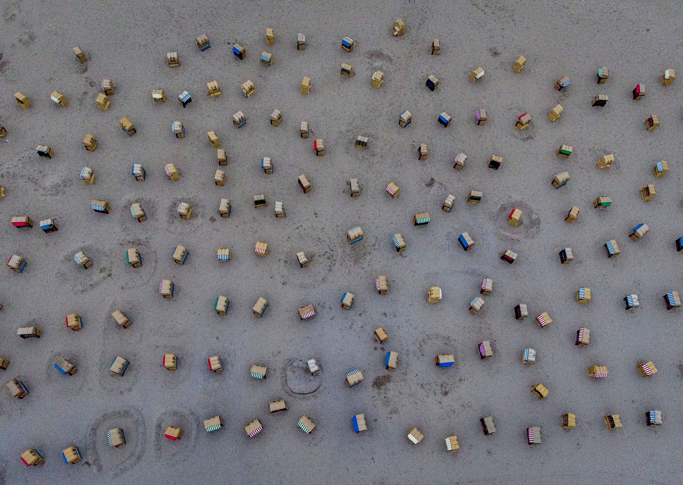 Le sedie sulla spiaggia del Mar Baltico a Travemuende, in Germania, attendono con pazienza i bagnanti.