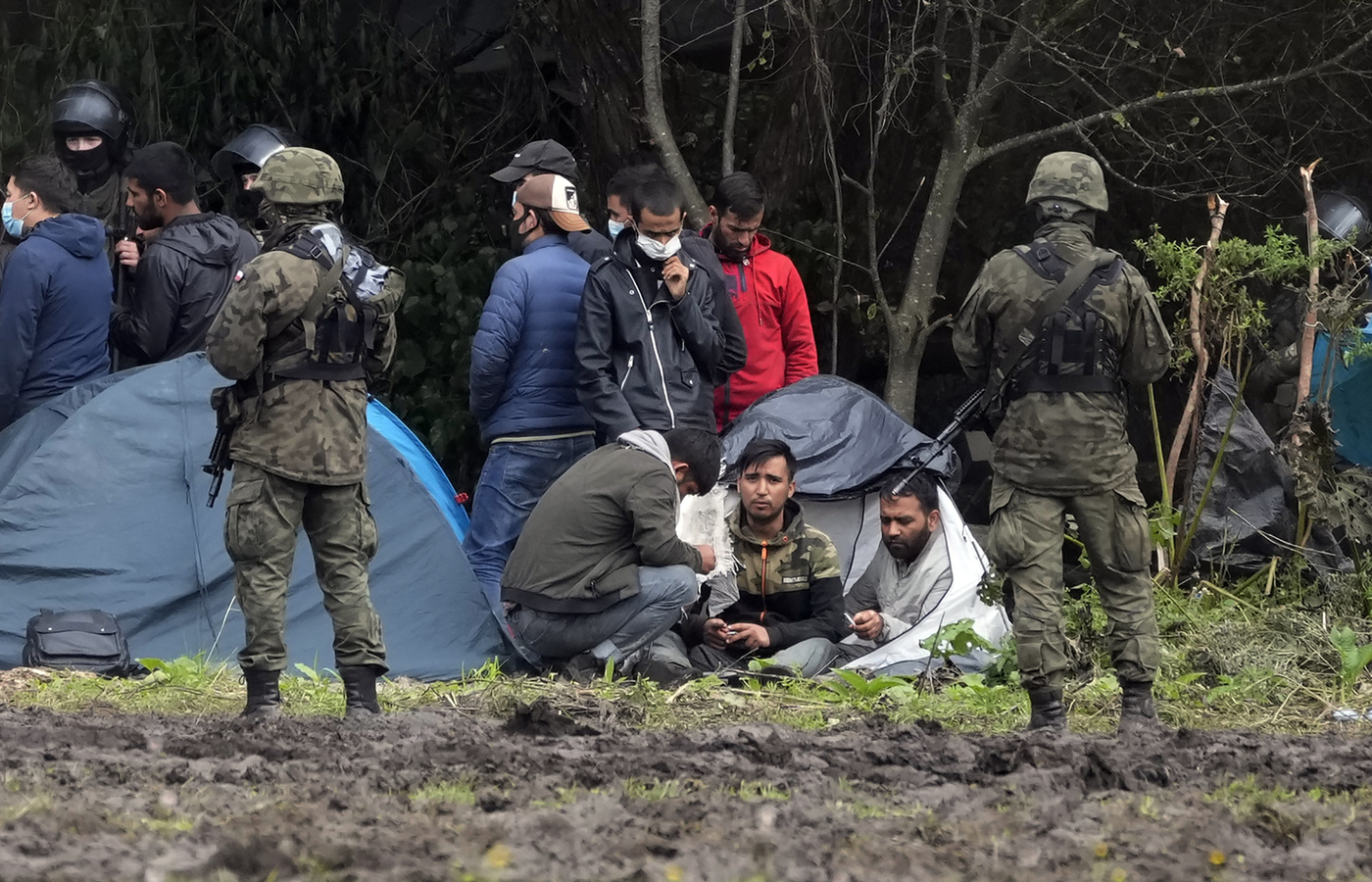 Le forze di sicurezza polacche circondano i migranti bloccati lungo il confine con la Bielorussia a Usnarz Gorny. La Polonia ha rafforzato il suo confine con la Bielorussia – facente parte del confine orientale dell’Ue – dopo che migliaia di migranti provenienti da Iraq, Afghanistan e da altre nazioni hanno cercato di entrare illegalmente nel Paese. Il governo polacco sostiene di essere il bersaglio di una “guerra ibrida” condotta dall’autoritaria Bielorussia. Gli attivisti per i diritti umani sono preoccupati per un gruppo catturato lungo il confine, intrappolato tra guardie armate da ogni lato.