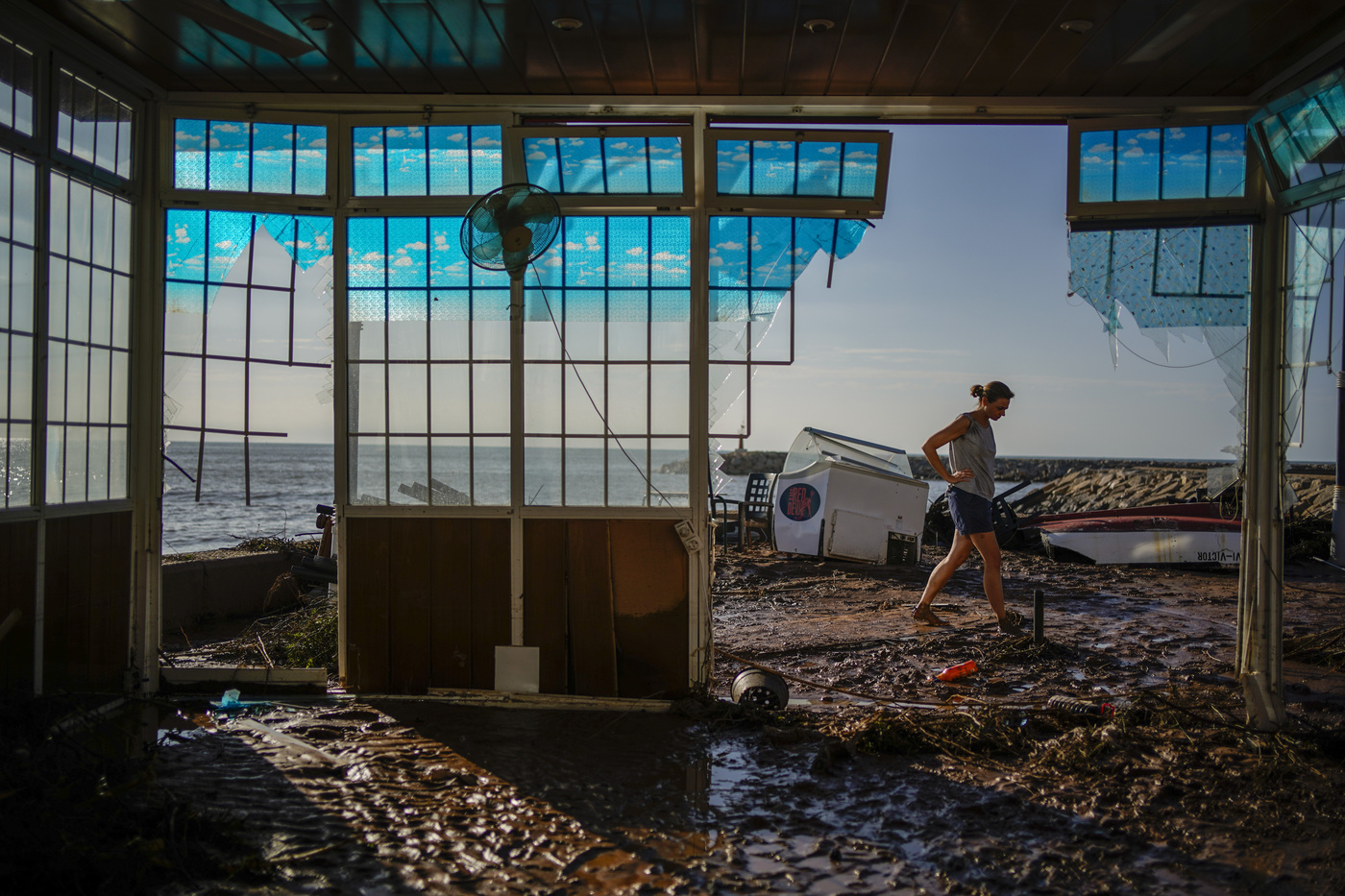 Carla Bayerri, 45 anni, ispeziona il suo ristorante dopo l’inondazione che ha colpito la città balneare di Alcanar, nel Nord-est della Spagna. Un acquazzone che ha creato grandi inondazioni improvvise che hanno spazzato le auto lungo le strade della città catalana. La maggior parte della Spagna continentale è sotto allerta per le forti piogge.