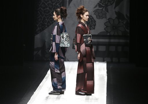 Sulle passerelle giapponesi di Tokyo sfilano modelli delle collezioni autunno-inverno 2013-2014. Nelle foto, creazioni degli stilisti Steven Hall e Yurika Ohara, Makiko Sekiguchi e Hiroyuki Horihara, Jotaro Saito, Utsugi (Foto Ap).