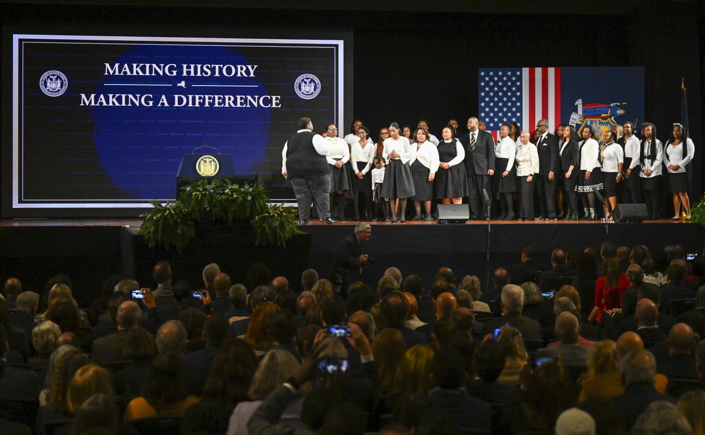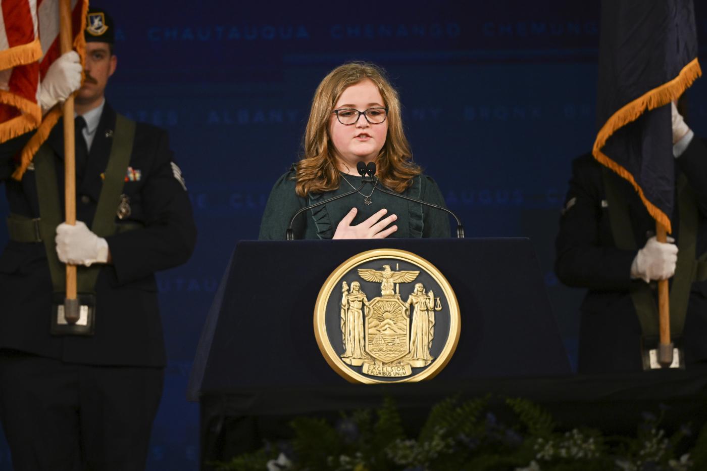 Vestita di bianco, nel suo discorso la Hochul ha omaggiato il ruolo delle donne nella società e nella politica, dichiarando di aver pensato «a tutte le donne che sono venute prima di me, compresa mia madre che non era lì, ma a molte donne della storia… Ho sentito che mi hanno passato la torcia» e ha annunciato che ci saranno due donne a capo di due ruoli esecutivi nella gestione di New York quali quello di segretario e consigliere del governatore.