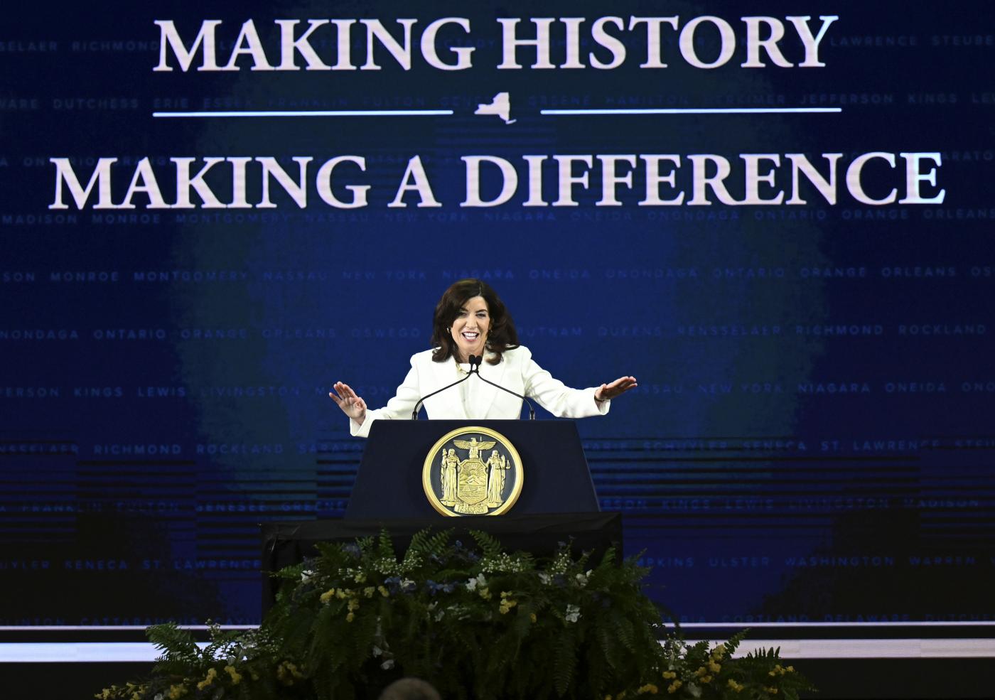 Eletta a novembre, Kathy Hochul ha giurato come governatore di New York, diventando il primo governatore donna eletto. Questo primato segue ad un altro: ad agosto 2021 era già stata la prima donna a ricoprire tale ruolo quando ha sostituito Andrew Cuomo, dimessosi dopo uno scandalo legato ad accuse di molestie sessuali da parte di alcune sue collaboratrici.