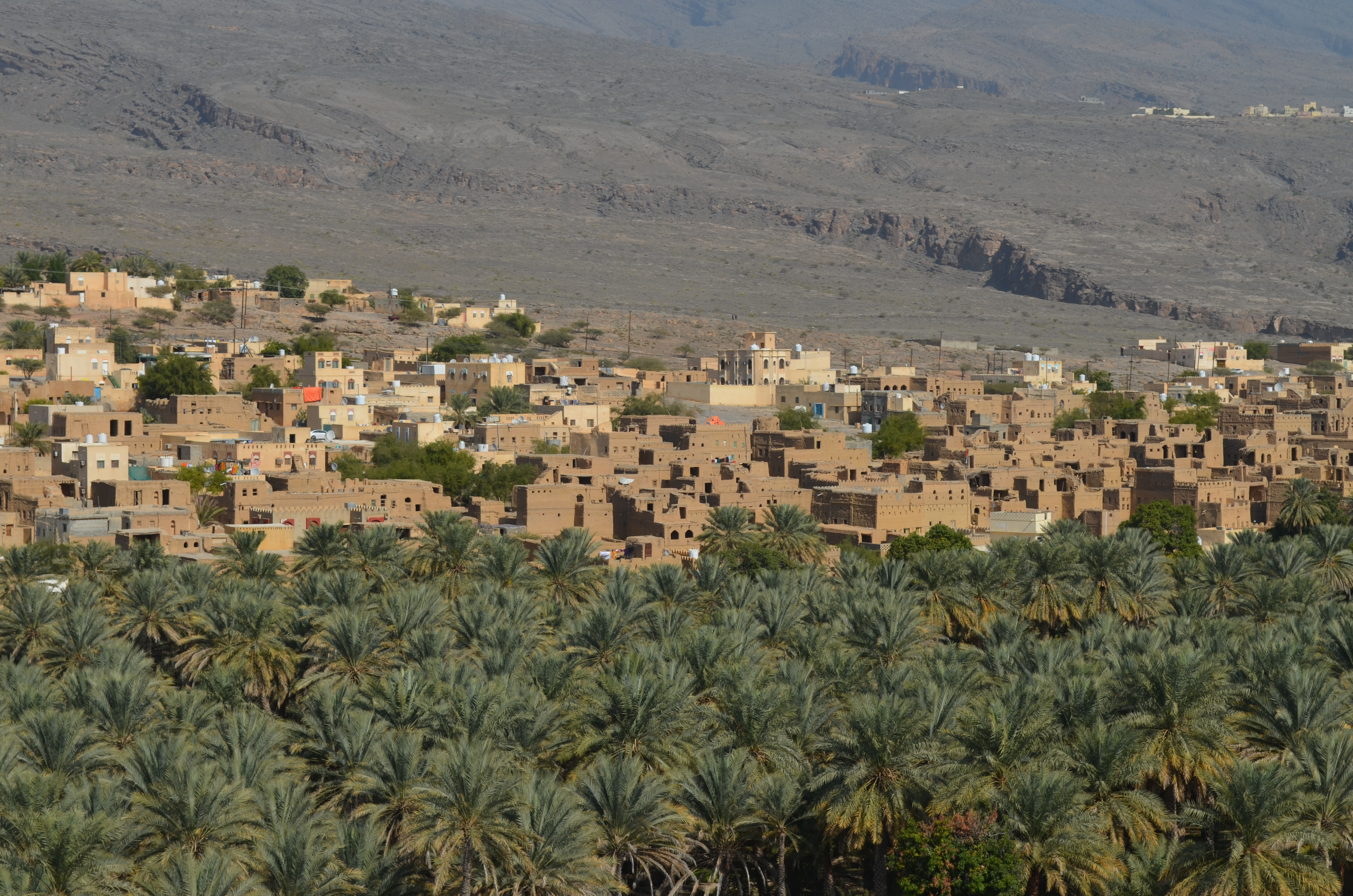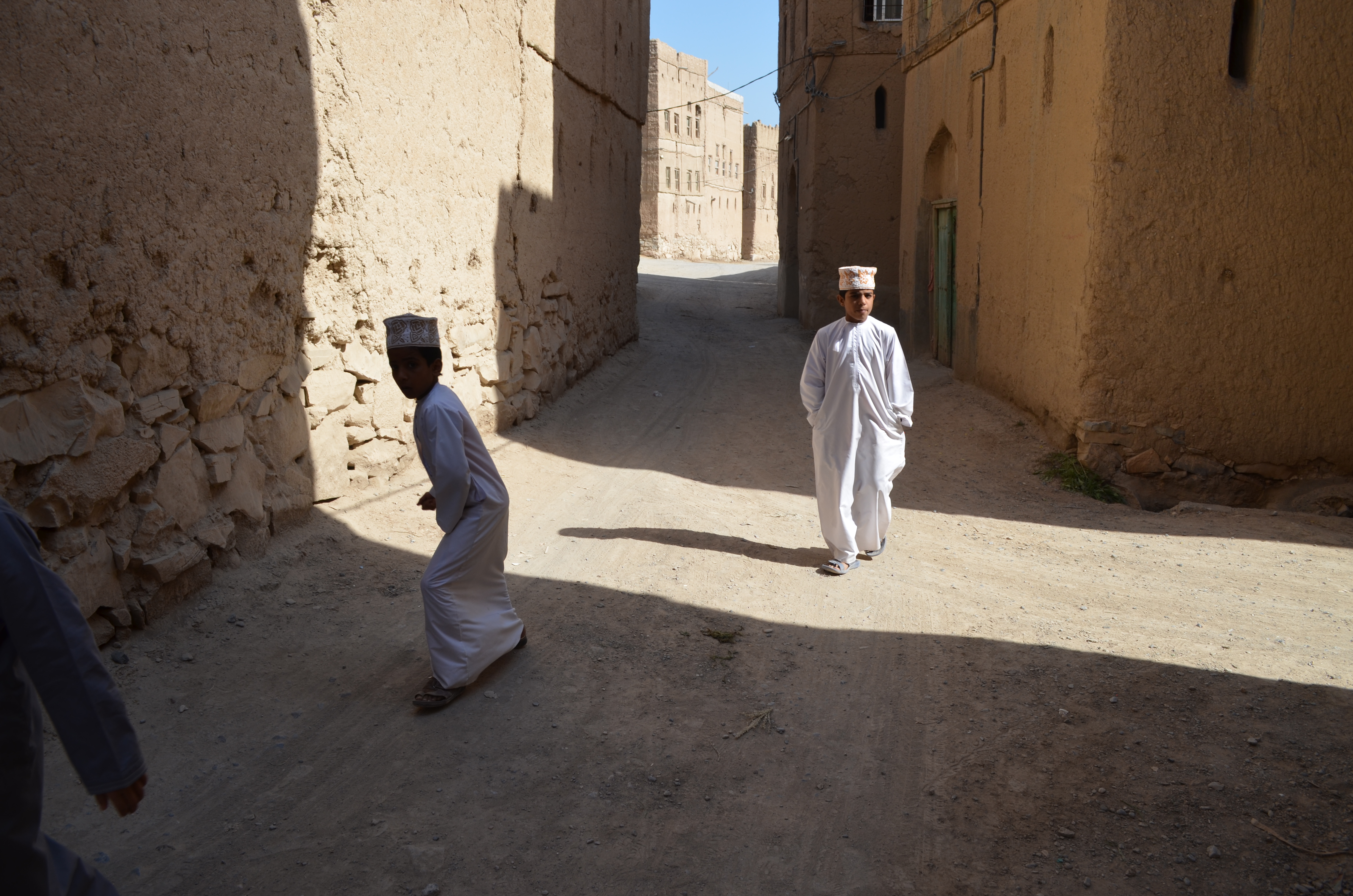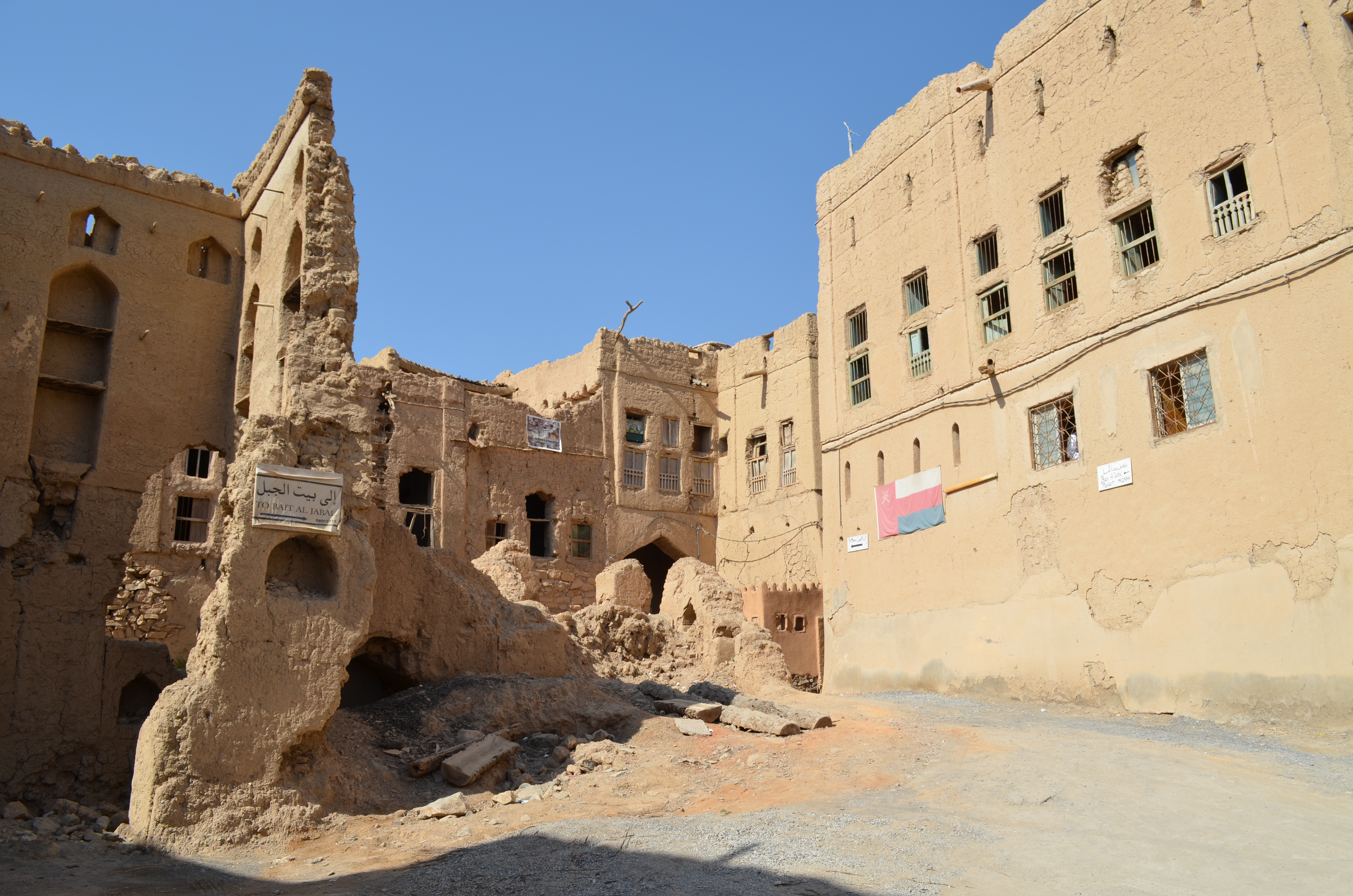 Oman, Al Hamra. Un’oasi nel deserto. Le costruzioni paiono destinate a ritornare sabbia, sassi. Ma la vita continua in mezzo alle rovine.