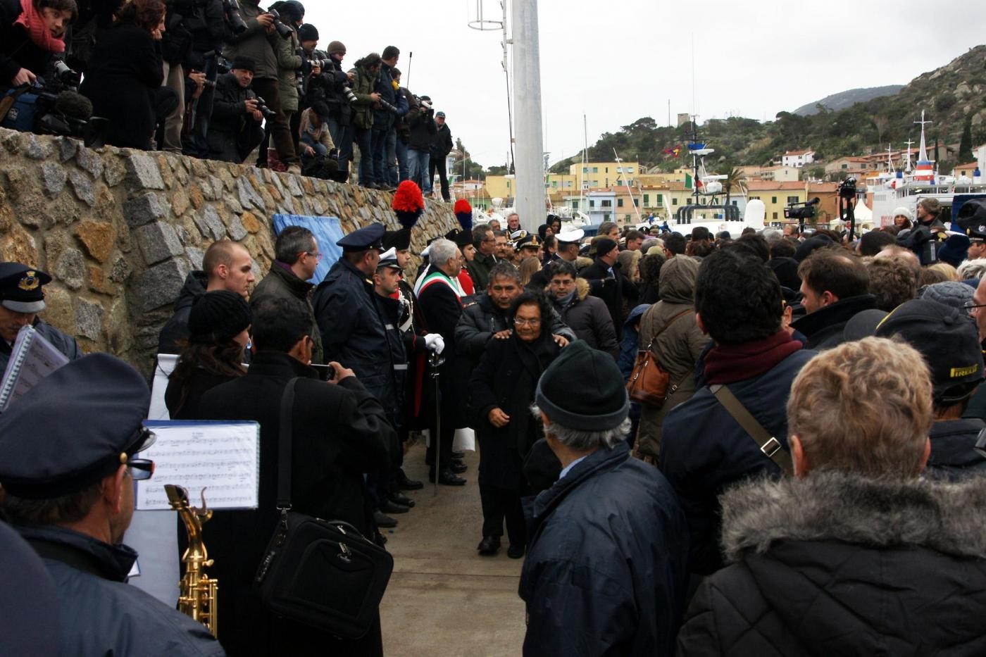 Cerimonia di commemorazione per le vittime della nave da crociera affondata a largo dell'isola del Giglio.