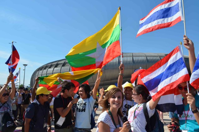 Start up, si comincia. Il Genfest parte dai giardini del Palasport Arena di Budapest come un meeting dei popoli. Manolo Martini, noto conduttore televisivo annoda le danze, gli incontri, le performance improvvisate che si susseguono in tutti gli angoli all’esterno dell’arena. Alcuni stand raccontano la storia e le tradizioni dei Paesi dell’est e del Centro-Europa: ci si conosce, ci si incontra, si degustano cibi mai visti o tradizionale . Essere qui significa allargare la nostra mente sul mondo. Ciascuno arriva con un pensiero, una cultura di cui è geloso. Scambiarci con semplicità le bandiere, le foto, le impressioni non ci estranea da quanto accade fuori, anzi fa entrare dentro di noi un pezzo di mondo, che fino a qualche ora fà era solo un disegno sulla mappa, solo una nozione imparata a scuola. Ora è anche un volto e una storia, così Patrizia dal Brasile, per la prima volta in Europa e per la prima volta a questo meeting. Stasera il concerto augurale vedrà la presenza del sindaco di Budapest István Tarlós e del cardinale Péter Erdő. Si esibiranno dieci band da varie nazioni con pezzi inediti. Interessante l’esperienza del complesso burundese: ai componenti è stato rifiutato il visto, ma la cantante ha messo insieme un coro direttamente a Budapest e la canzone sarà eseguita ugualmente.