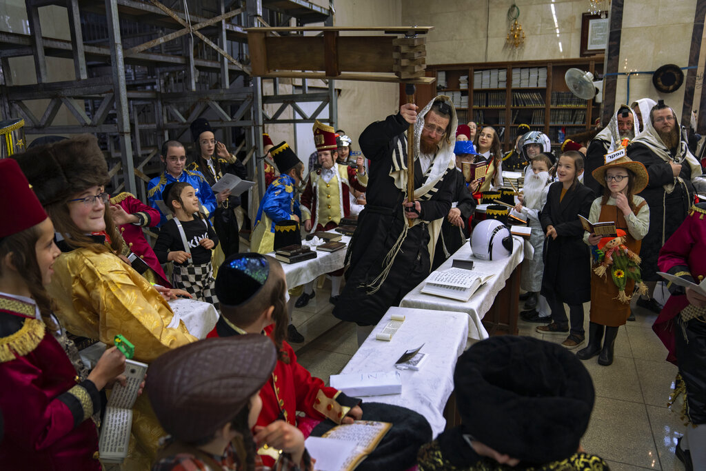 Ad oggi, il Purim è caratterizzato da un’atmosfera gioiosa e carnevalesca, dove si brinda e si balla e adulti e bambini si travestono con i costumi più svariati, anche durante la funzione al tempio, in ricordo del ribaltamento della sorte del popolo ebraico; per questo è anche ricordata come “carnevale ebraico”. (AP Photo)