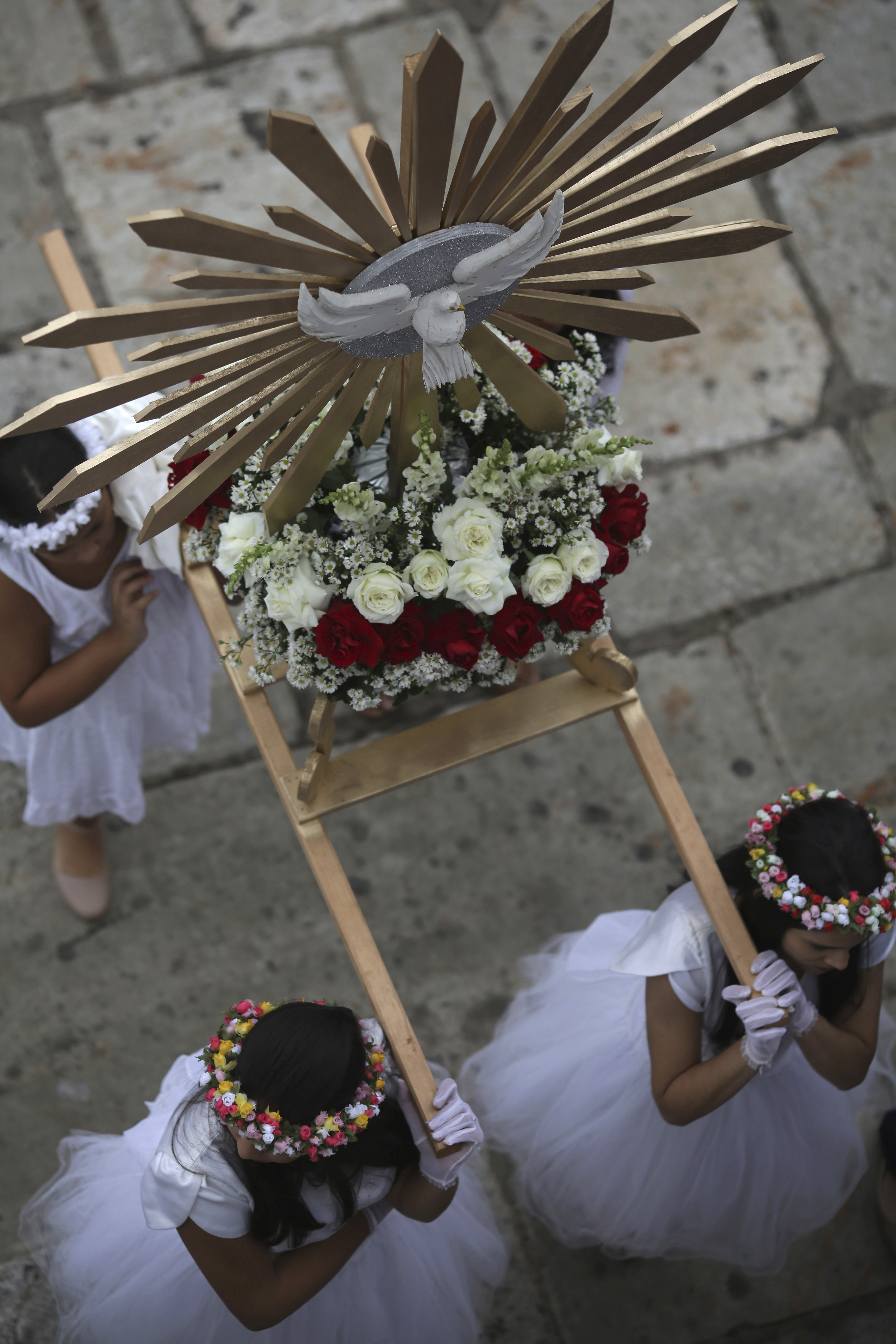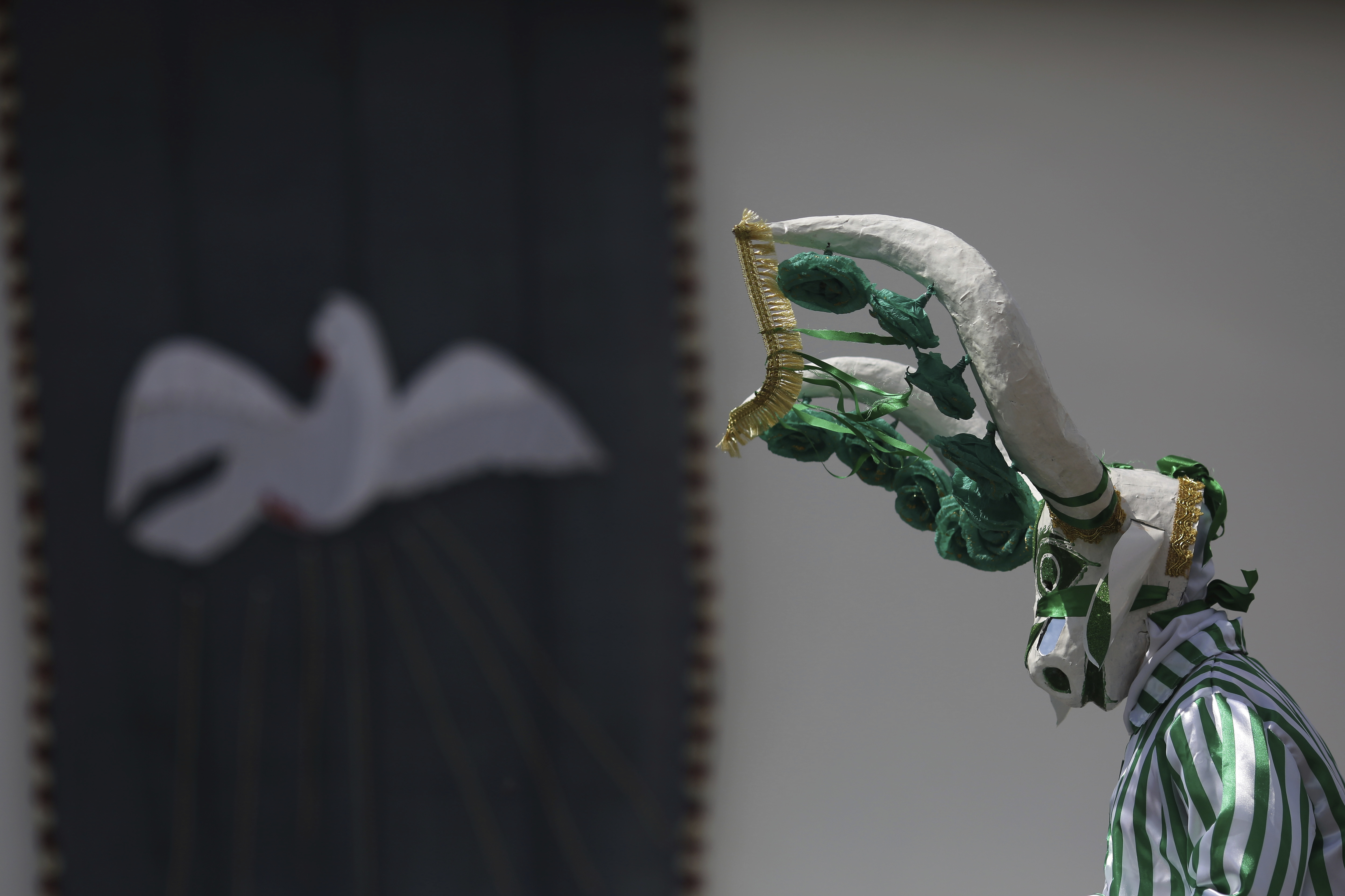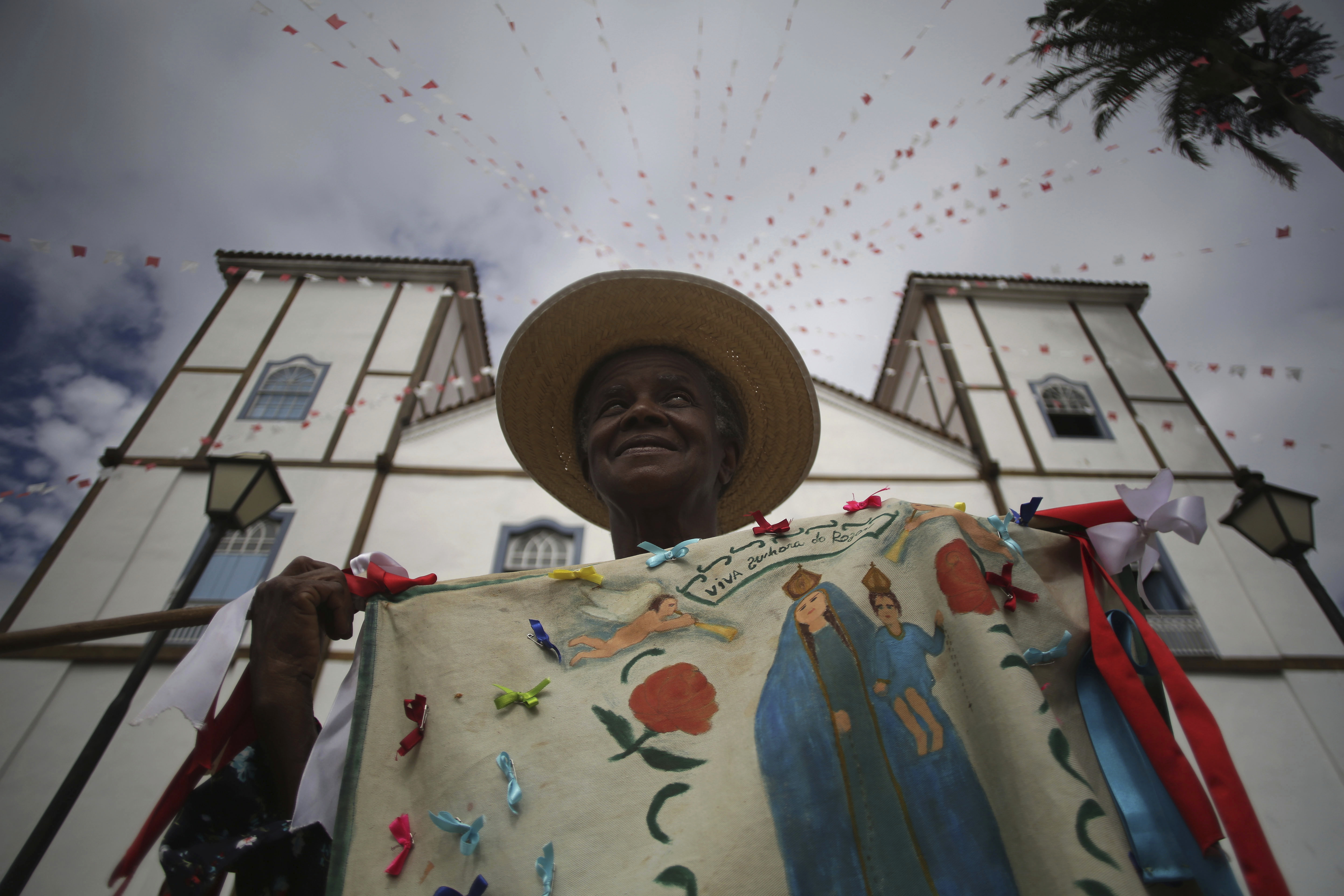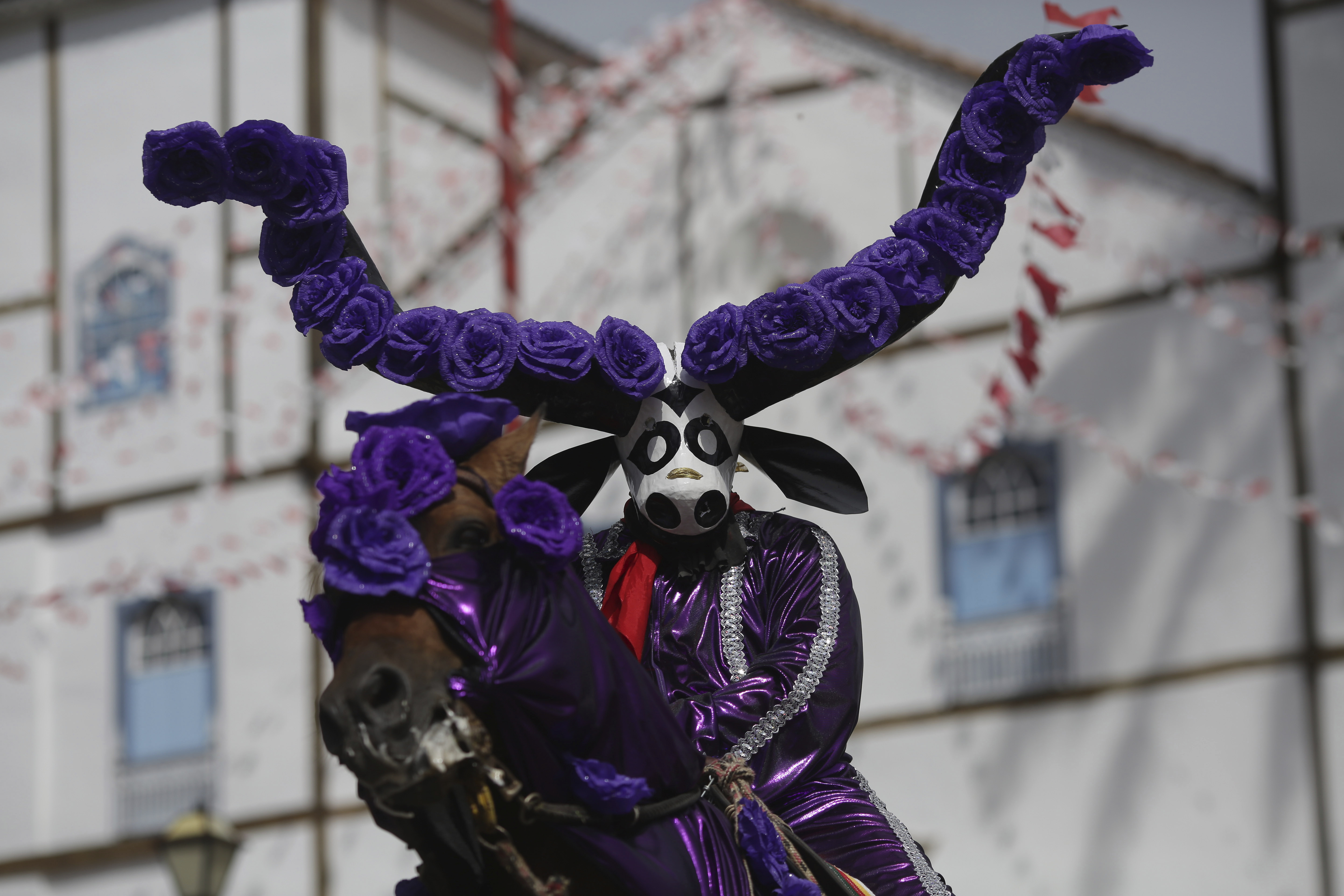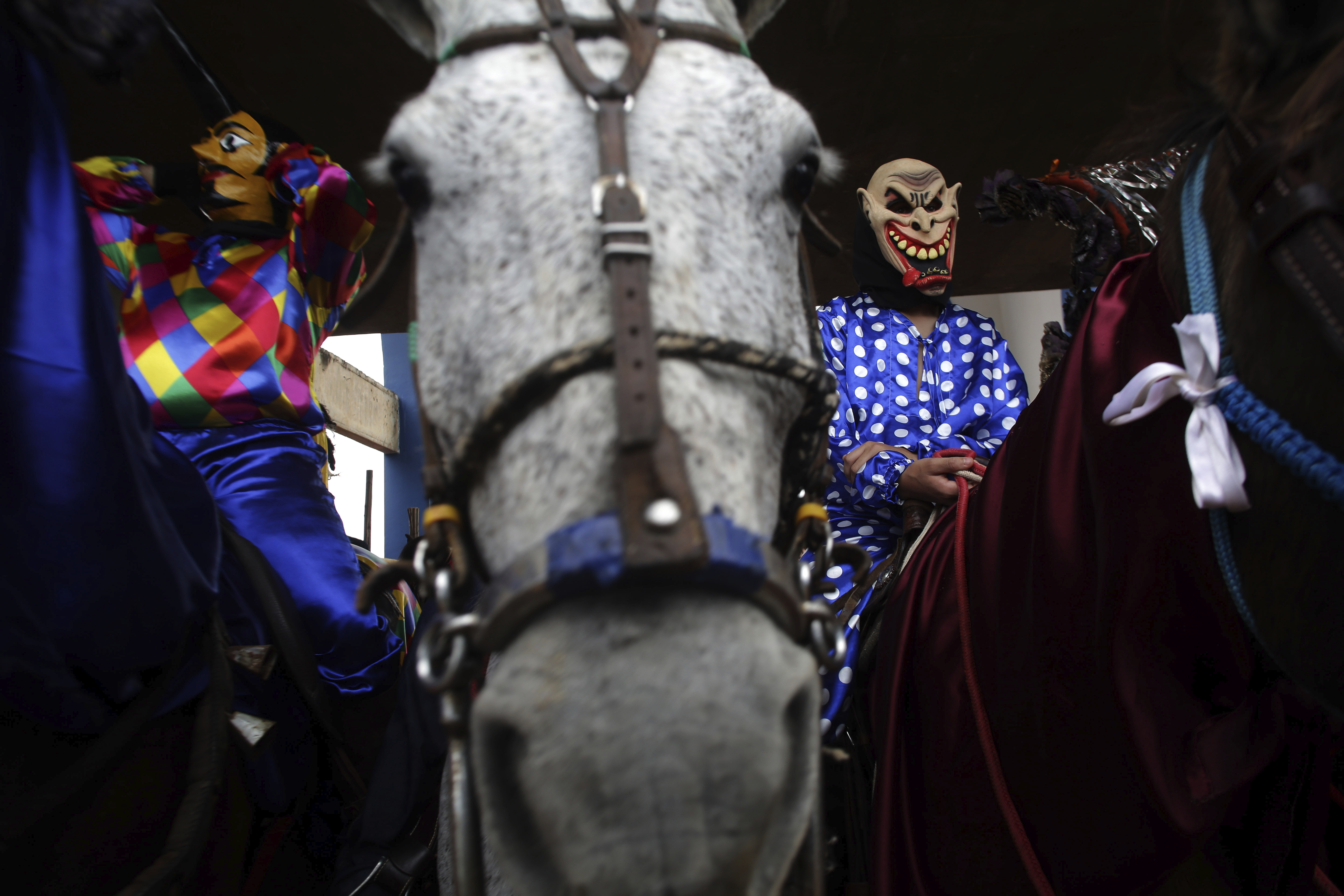 Corse dei cavalli, processioni, maschere e allegria nelle strade durante il festival “Cavalhadas” a Pirenopolis, nello stato di Goias, Brasile. Il festival di tre giorni è stato portato in Brasile nel 1800 da un sacerdote portoghese per celebrare lo “Spirito Santo” e commemorare la vittoria medievale dei cavalieri cristiani iberici sui Mori. (AP Photo / Eraldo Peres)