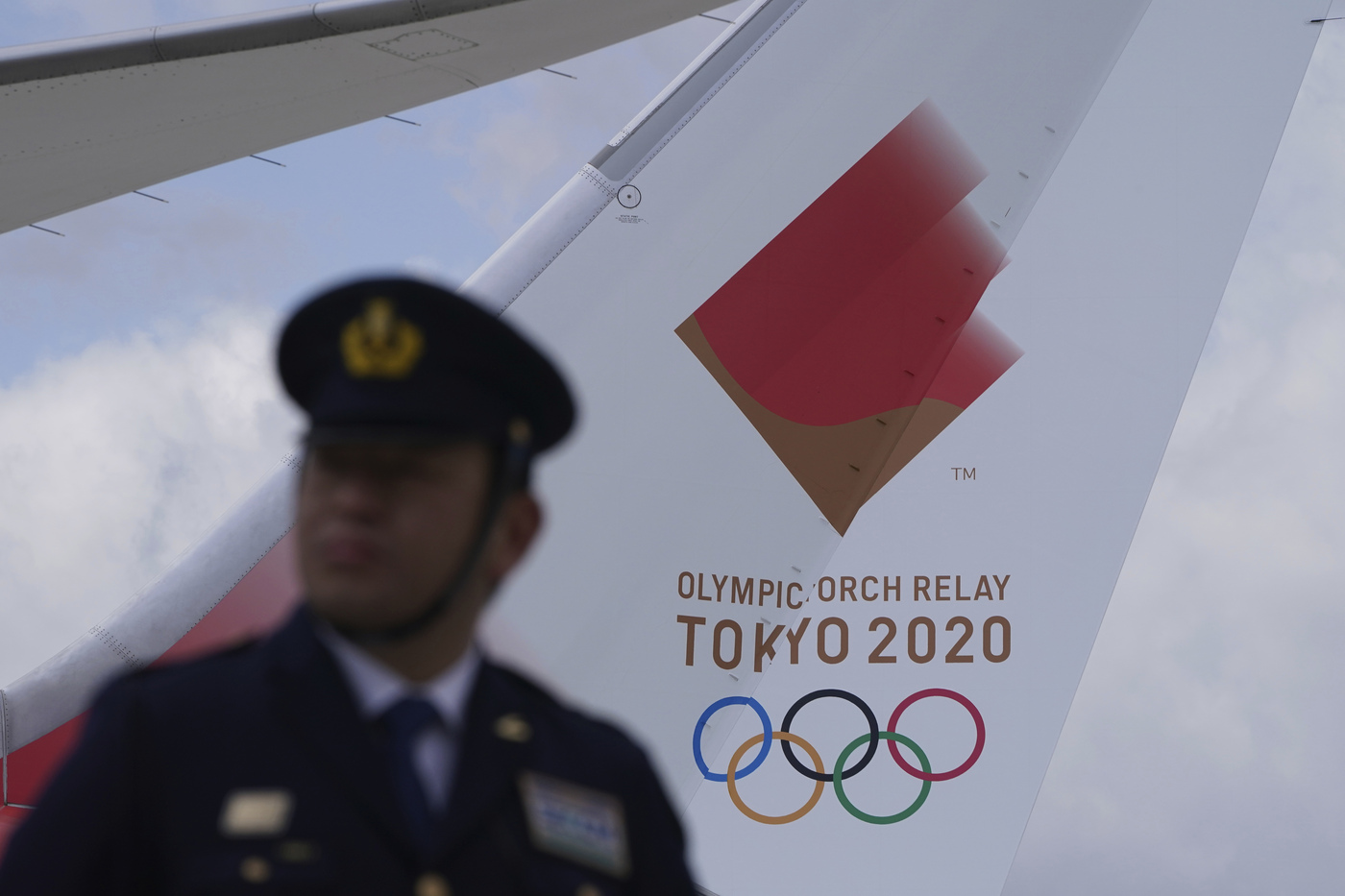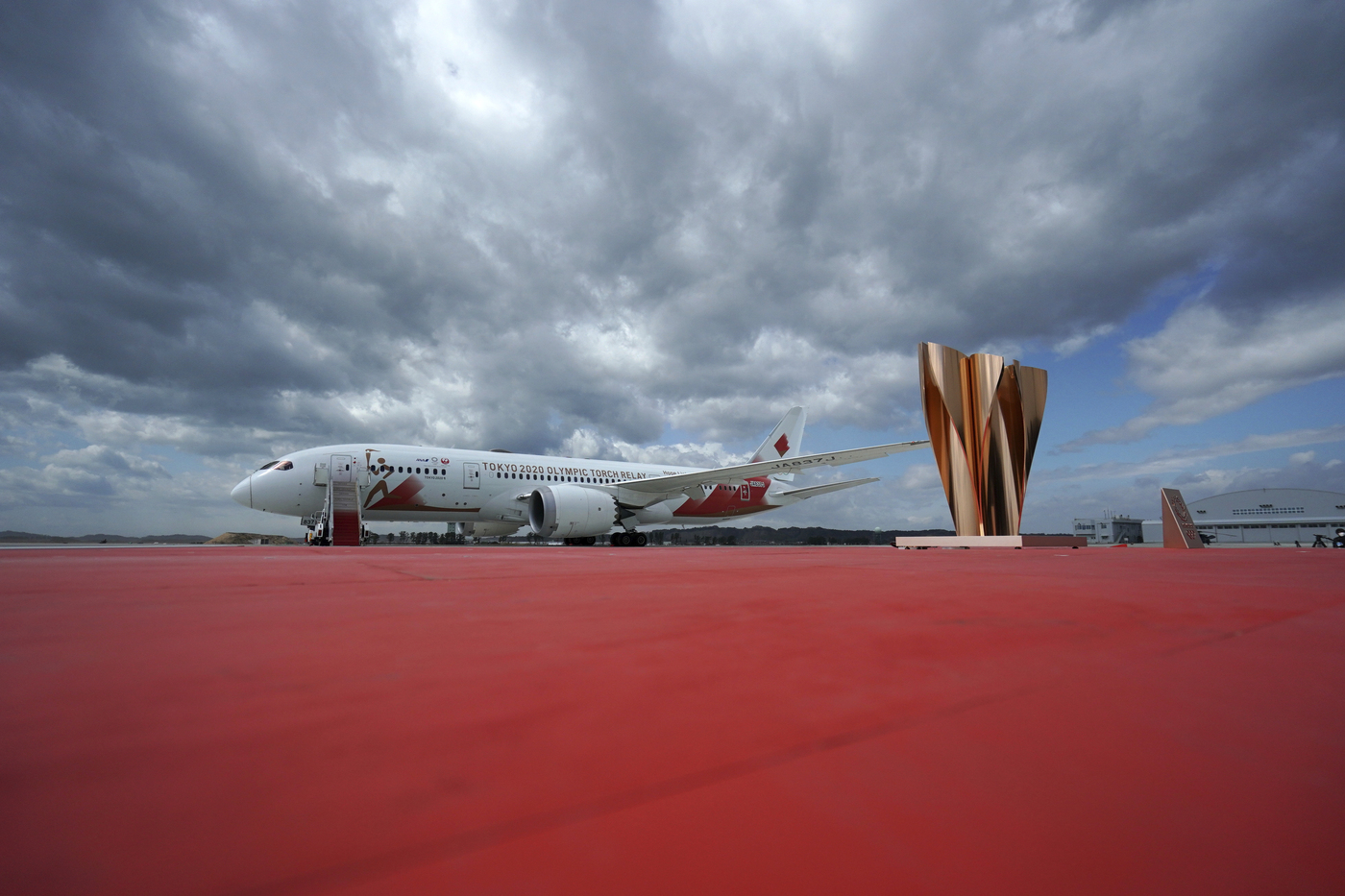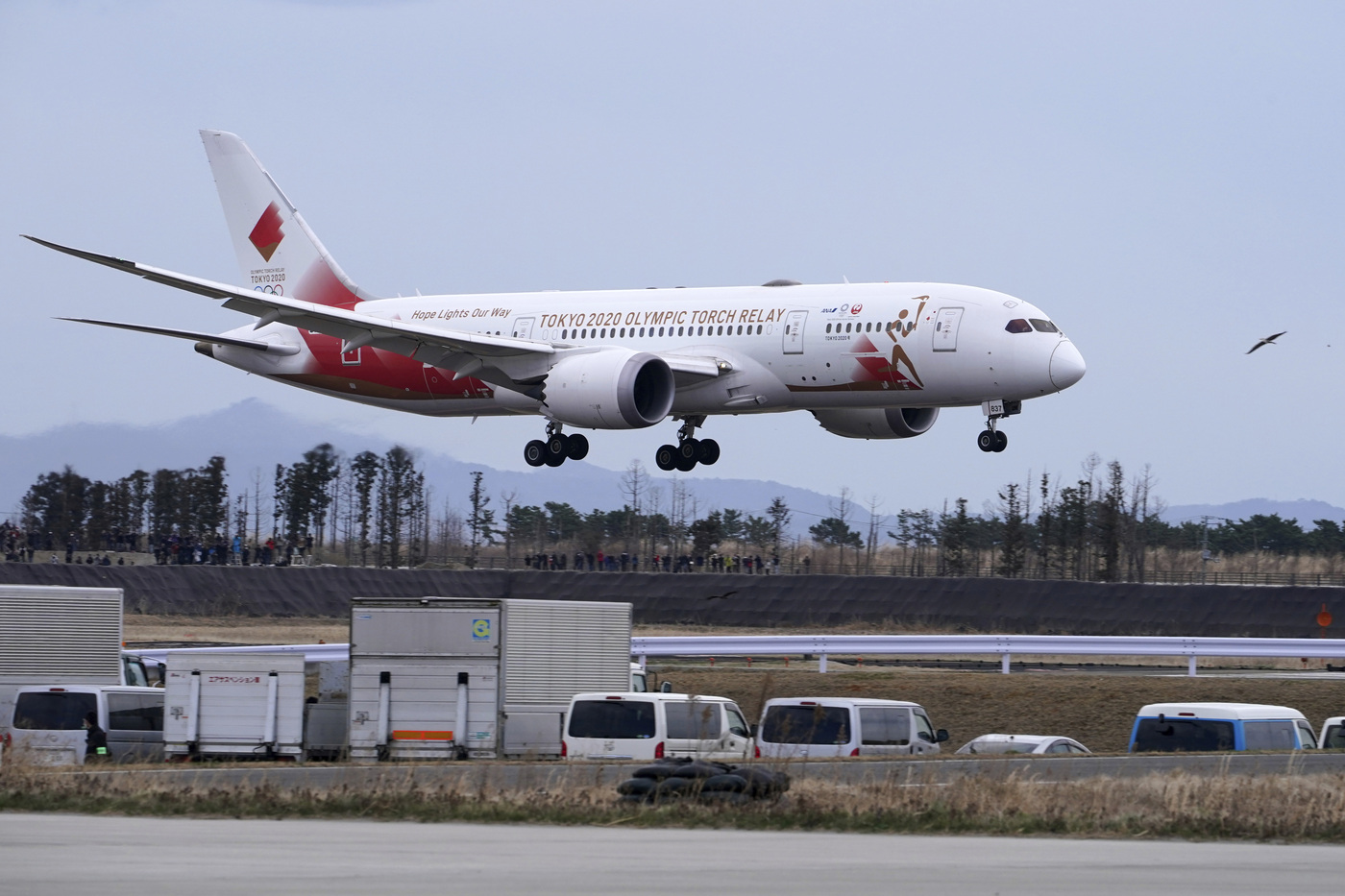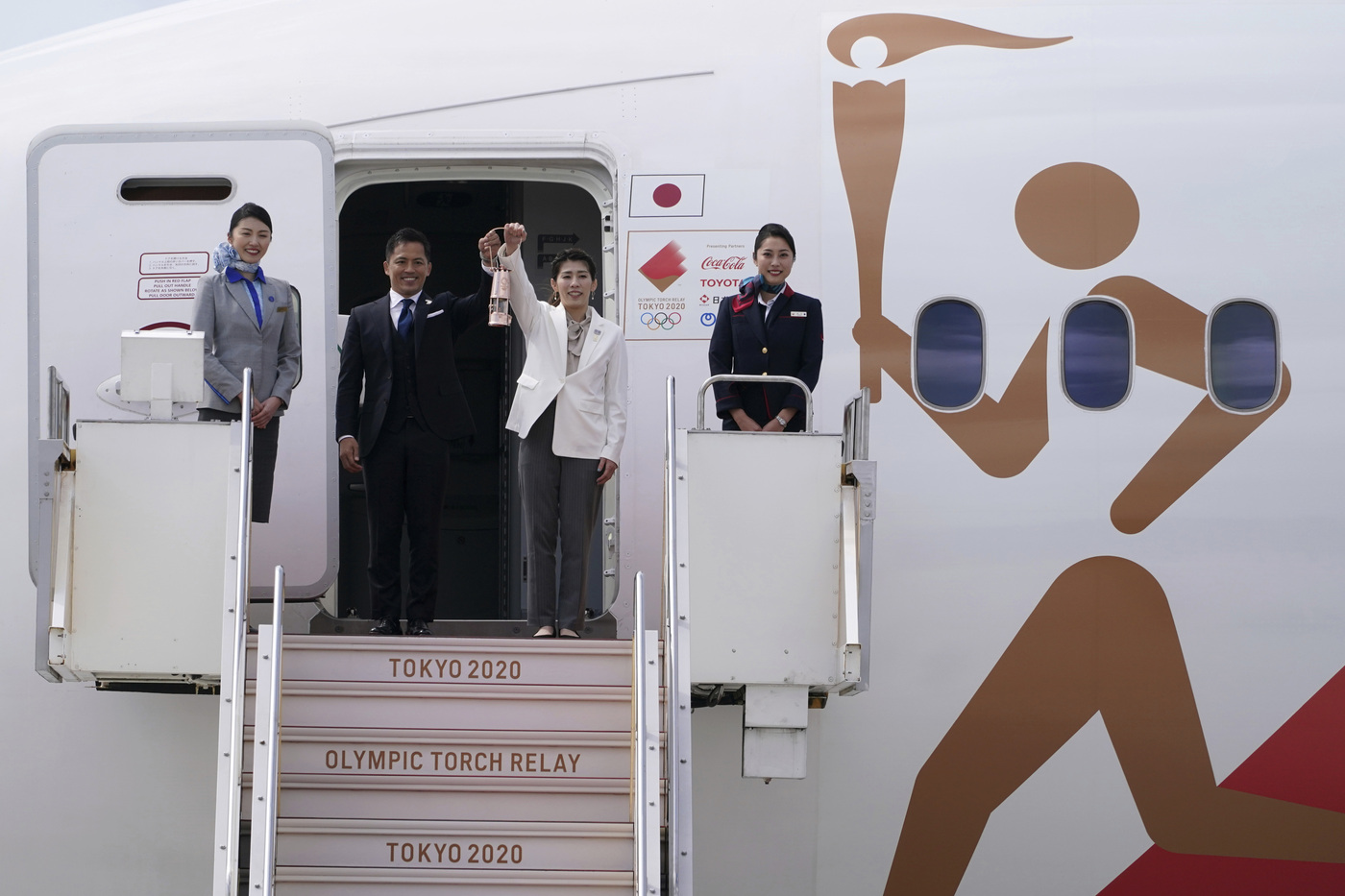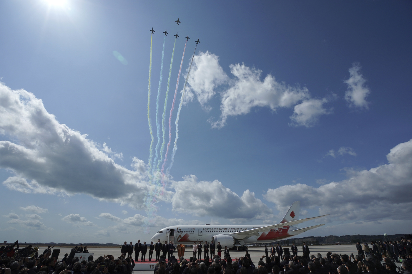 Cerimonia di arrivo della fiamma olimpica alla base aerea di autodifesa della Japan Air Self-Defense Force Matsushima a Higashimatsushima nella prefettura di Miyagi, a Nord di Tokyo, anche se l’apertura dei Giochi Olimpici tra quattro mesi è in dubbio e molti suggeriscono che dovrebbero essere rinviati o cancellati a causa della pandemia di virus in tutto il mondo. Il ministro delle Finanze giapponese Aso ha definito quelle di Tokyo come “Olimpiadi maledette”. Due curiosità: la fiamma olimpica è stata collocata in una lampada da minatore per il trasporto a bordo del Boeing 787 Dreamliner della Jal (linee aeree giapponesi) ribattezzato “Tokyo 2020 Go”.