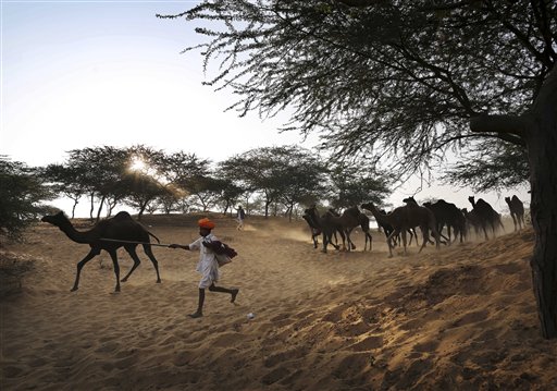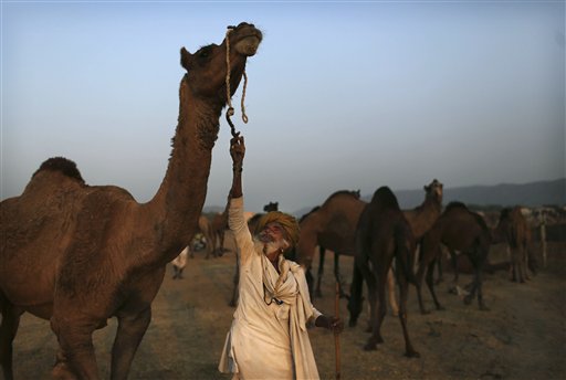 Tradizionale mercato di cammelli e cavalli a Pushkar, nella regione indiana del Rajasthan. Per l’occasione, oltre alla vendita di centinaia di animali, si organizzano tra i mercanti gare di “baffi”  e le  tradizionali corse di cammelli che attirano nella zona tantissimi turisti indiani e stranieri (foto Ap).