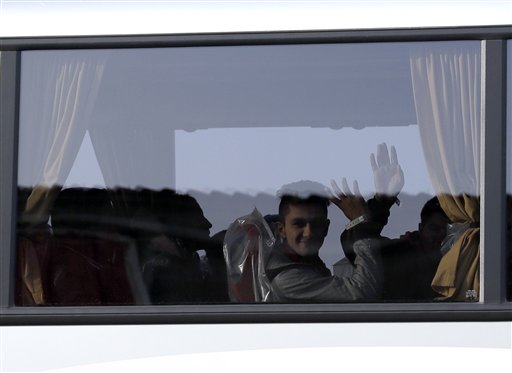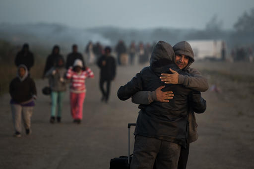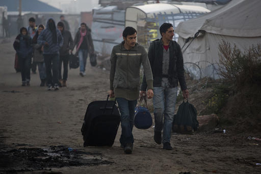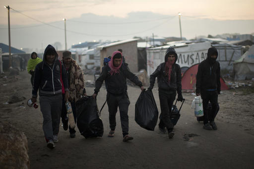 Continua a Calais, in Francia, finora senza scontri eccessivamente duri, lo sgomebro di quella che viene definita una delle vergogne d'Europa. I migranti, che sognavano di raggiungere la Gran Bretagna, verranno distribuiti in altre zone del Paese (foto AP)