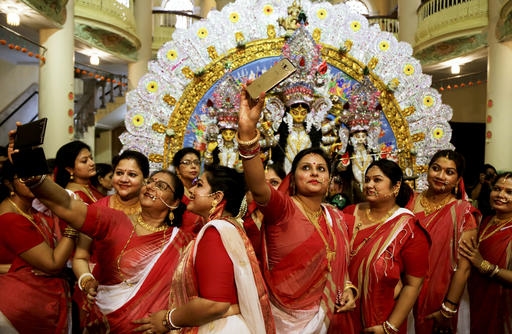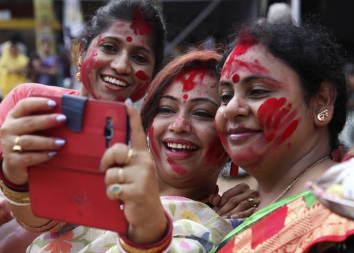 Cambiano le culture e i Paesi ma domina la moda di lasciarsi immortalare con un semplice autoscatto, spesso tra amici e conoscenti. Cosa induce questo desiderio di fissare l'attimo per documentare l'esistenza del momento che fugge? Immagini dall'Hindu festival in India e Pakistan. Foto Ap