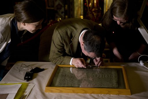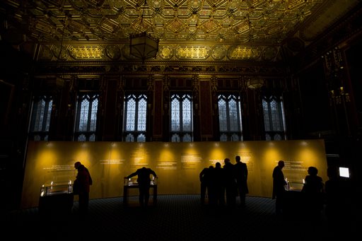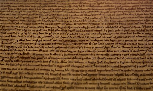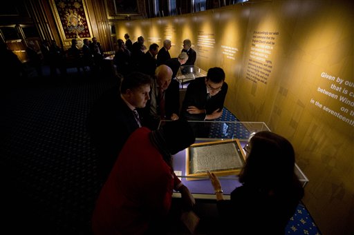 Le quattro copie esistenti della Magna Carta Libertatum sono state riunite per la prima volta nella storia. I documenti sono esposti insieme nella British Library come parte di una serie di eventi che celebrano l’ottocentesimo anniversario della loro creazione, il 1215. Lo Statuto fu imposto a re Giovanni Senza Terra dai baroni feudali per limitarne i privilegi. Tra le altre cose, ha decretato che nessuno è al di sopra delle leggi, incluso il re, e ha stabilito regole per processi imparziali e limiti alle tasse. Si crede che abbia anche ispirato la Costituzione degli Stati Uniti d’America e la Dichiarazione universale dei diritti umani (foto Ap).