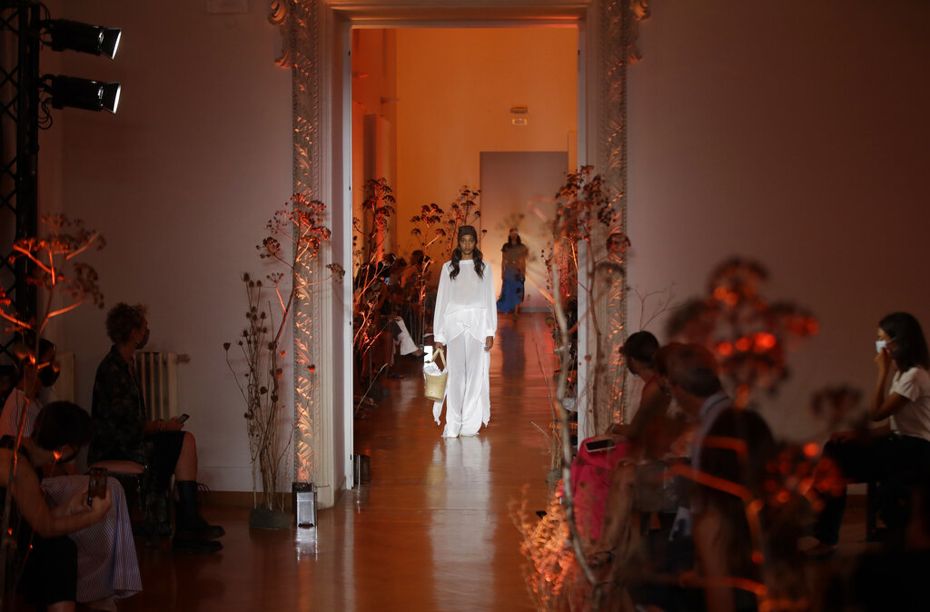 Nell’anno più negativo mai registrato per il settore del lusso, l’industria della moda italiana sta cercando di riportare l’ottimismo nel settore organizzando la Milano Fashion Week ibrida, live-digitale, dal 23 al 28 settembre. In programma 23 sfilate dal vivo e 37 presentazioni, per un totale di 52 spettacoli, 24 dei quali in formato digitale. La pandemia COVID-19 ha costretto molti marchi di moda a ripensare il modo con cui mostrare le proprie collezioni. (AP Photo / Luca Bruno e Alessandra Tarantino)
