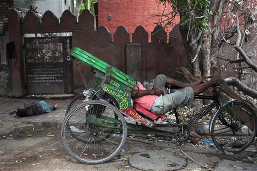 Più di 800 milioni di persone in India vivono sotto la soglia di povertà, molti emigrano nelle grandi città in cerca di una vita degna di essere vissuta, ma spesso finiscono sulle strade, dormono a terra o sui risciò dopo aver lavorato tutto il giorno (foto Ap).