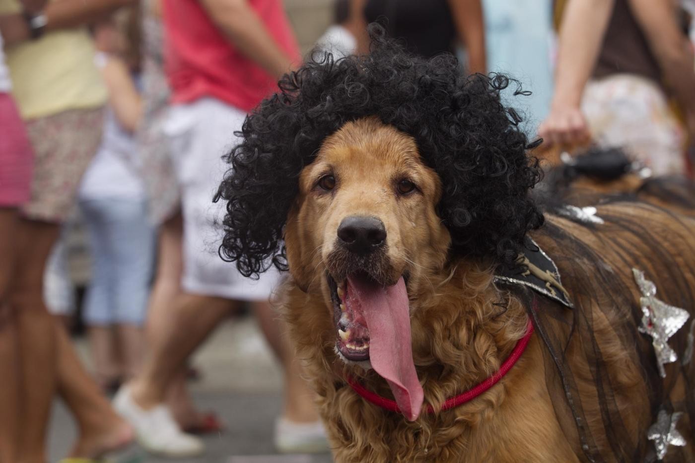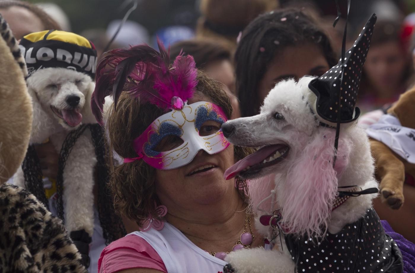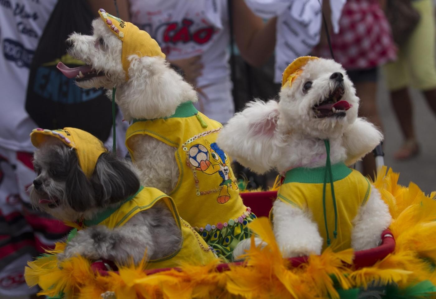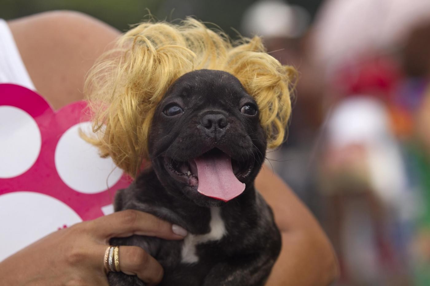A Rio de Janeiro, Brasile, l'euforia del carnevale non risparmia davvero nessuno: Blocao, la parata dei cani mascherati, ha invaso le strade della città, con curiose parrucche, vestitini carioca e lingue penzolanti (foto LaPresse)!