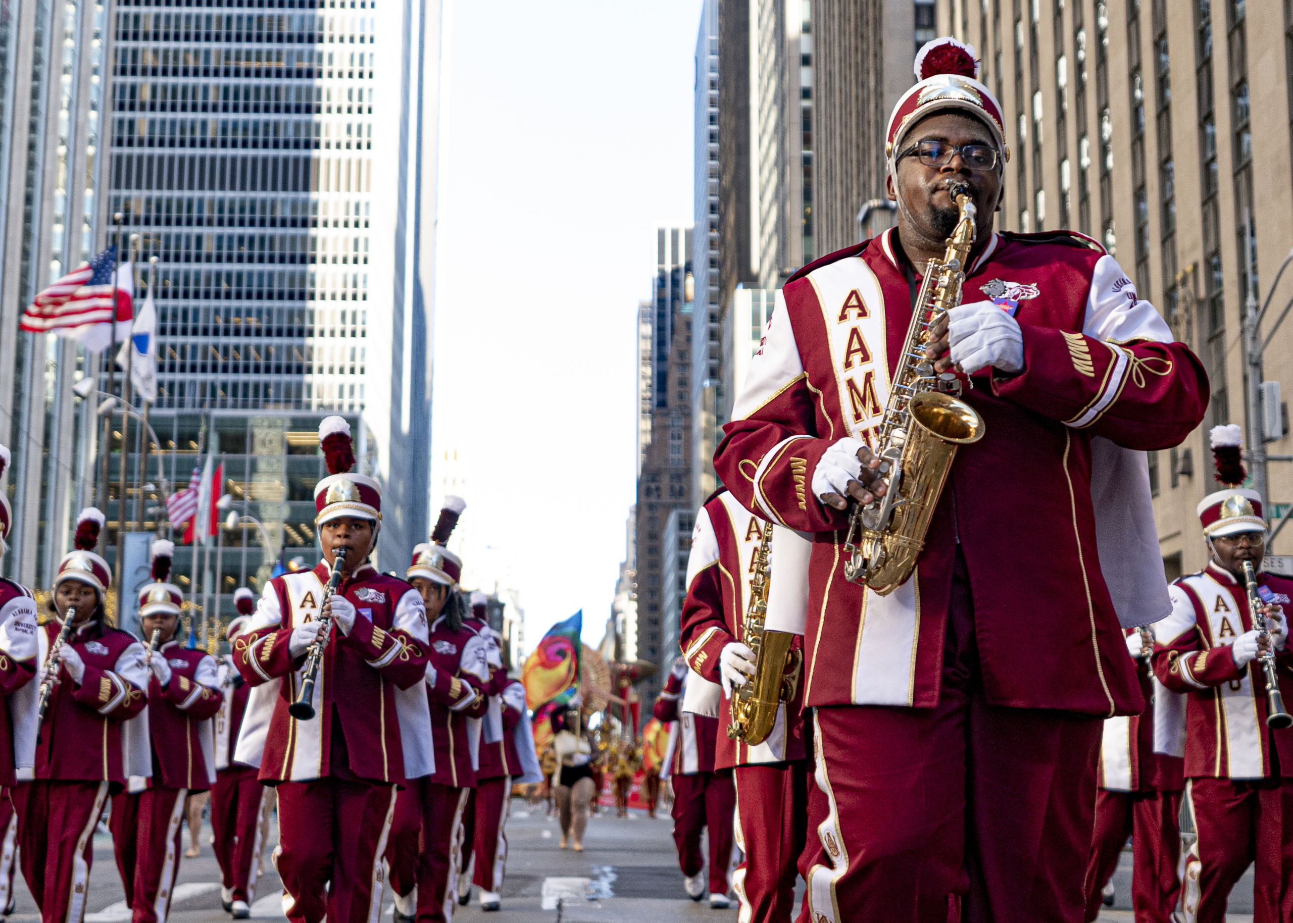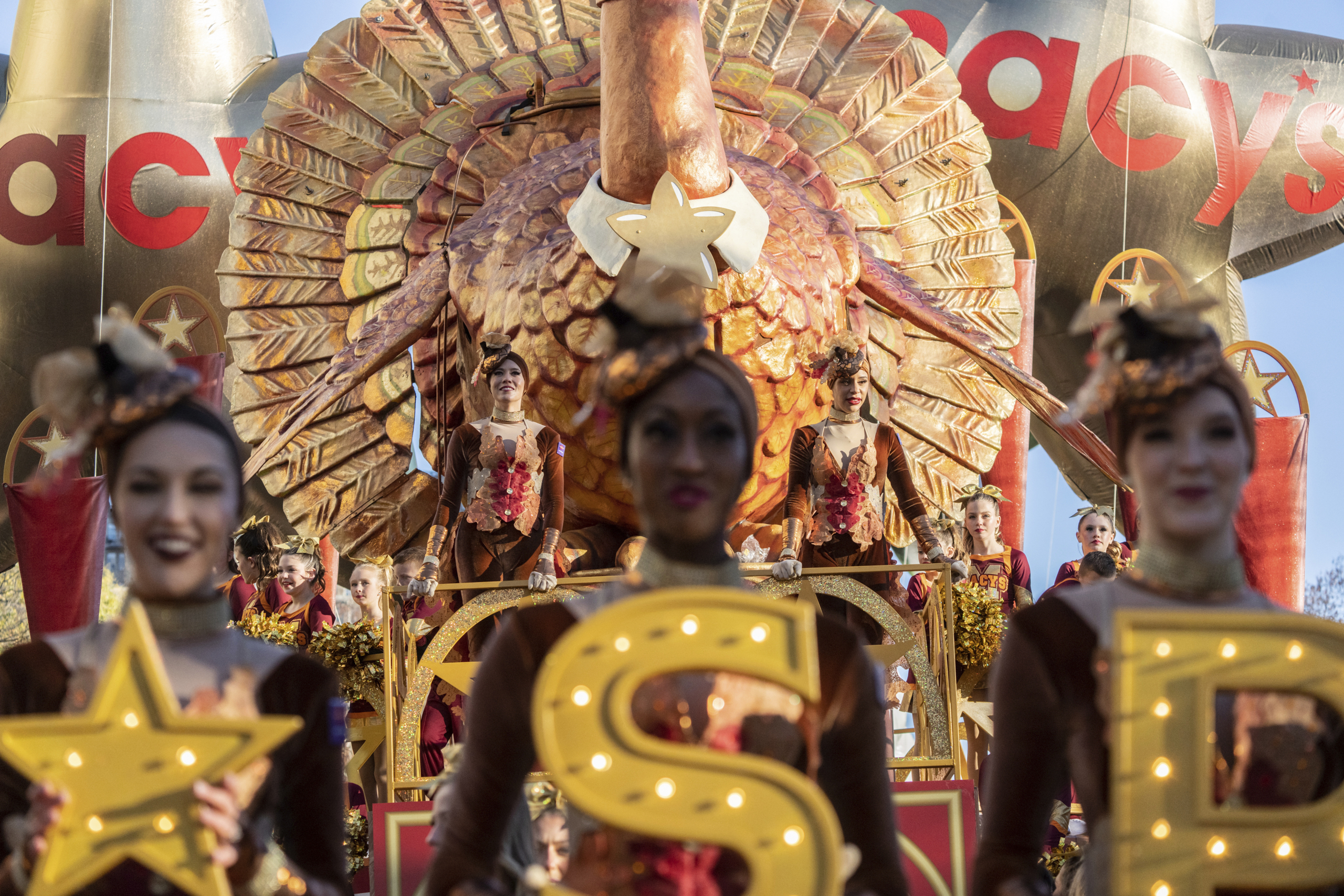 È la più nota delle manifestazioni del Thanksgiving Day, il giorno del Ringraziamento (caduto quest’anno giovedì 23 novembre), negli Stati Uniti: parliamo della grande parata organizzata da Macy’s, colosso del commercio, a Central Park a New York. Una lunga serie di carri allegorici, figuranti, gonfiabili, bande musicali, e tanto altro ancora; in un miscuglio di temi e bizzarrie per certi versi paragonabile alle nostre sfilate di carnevale. (AP Photo/Jeenah Moon)
