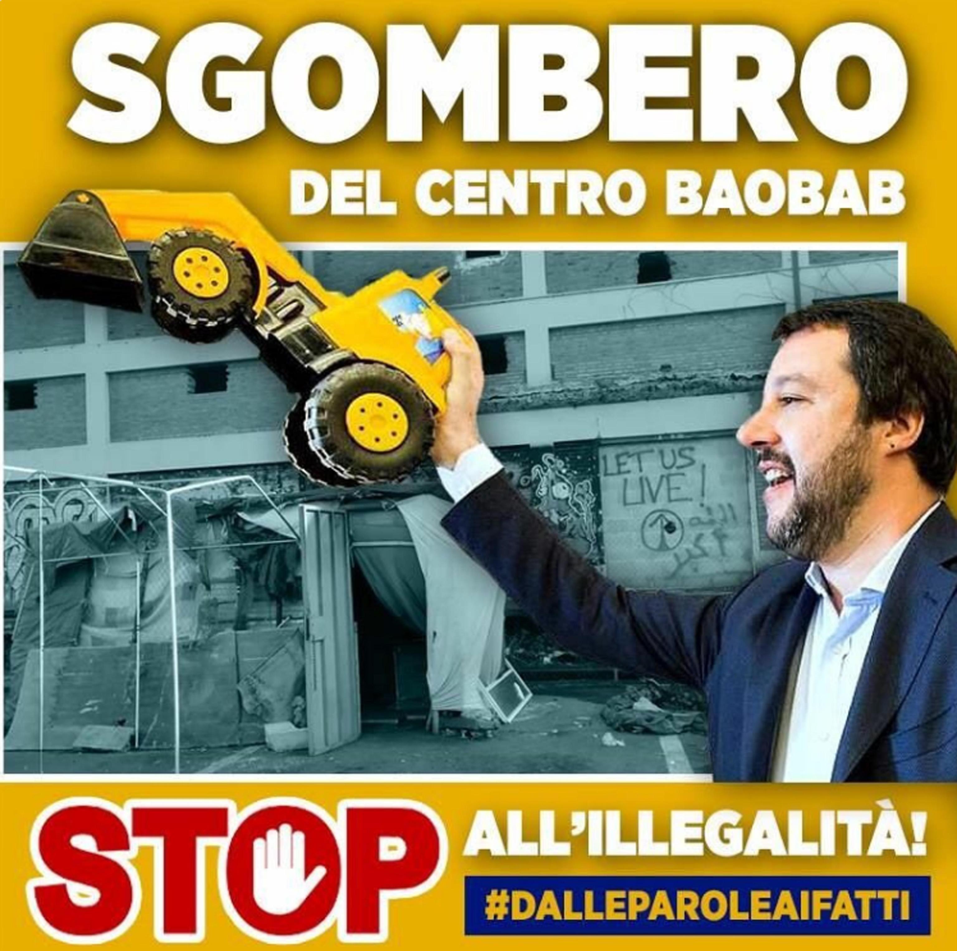 La mattina di martedì 13 novembre 2018 è stato demolito l’accampamento per i senza tetto allestito dai volontari del centro Baobab vicino la Stazione ferroviaria Tiburtina.