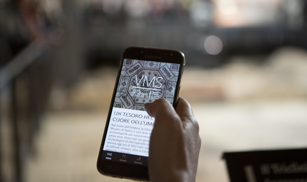 L’App Villa dei Mosaici di Spello è uno strumento interattivo e gratuito che accompagna il visitatore alla scoperta della Villa. Una volta in visita, è possibile accedere a contenuti multimediali aggiuntivi. Il museo è dotato di sensori (beacon) affiancati alle stanze e alle teche espositive. I sensori vengono individuati dall’App e restituiscono approfondimenti, fotografie dei particolari e un’audioguida da ascoltare.