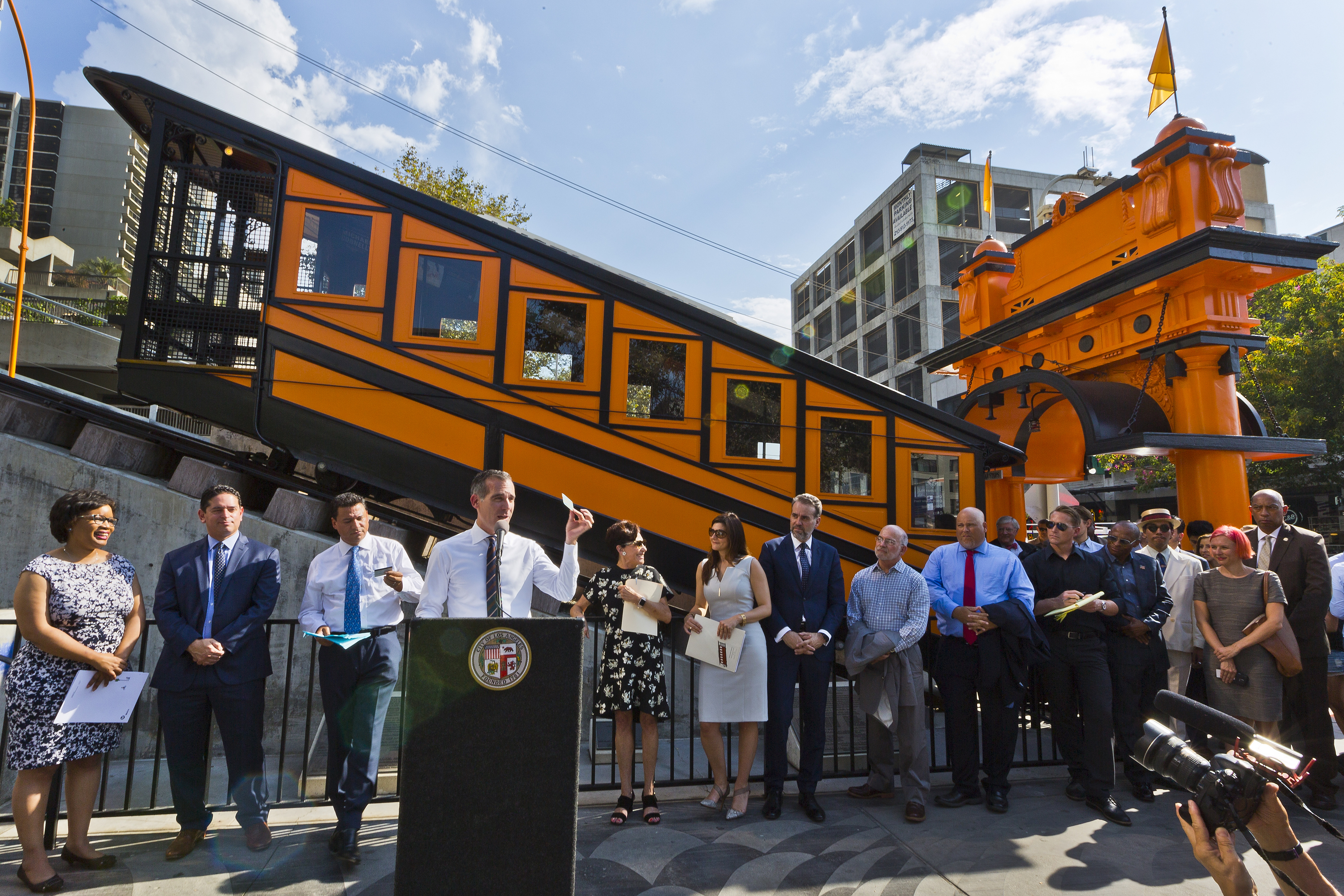 La funicolare più corta del mondo ha riaperto il 31 agosto, dopo quattro anni di lavori a causa di un deragliamento nel 2013. Si trova nel centro di Los Angeles la storica ferrovia aperta nel 1901, con due vetture, chiamate Sinai e Olivet, che traghettavano cittadini per il ripido pendio tra Hill e Olive Street. Nonostante la breve durata del viaggio, solo 96 metri, si calcola che abbia trasportato più passeggeri per miglio rispetto a qualsiasi altra ferrovia al mondo. Tra le foto, anche una scena del musical di successo “La la land” girata all’interno della funicolare. (foto Ap)