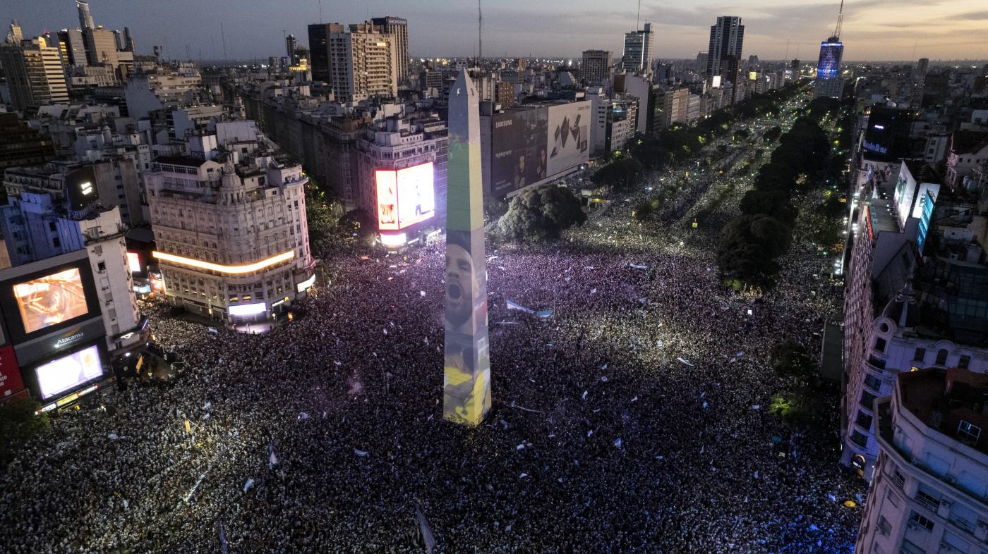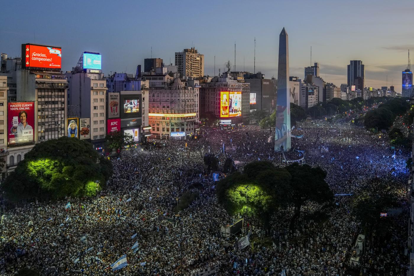 Esplodono i festeggiamenti per l’Argentina con un fil rouge che unisce Buoenos Aires a Napoli sotto il segno di Maradona. (Foto LaPresse)