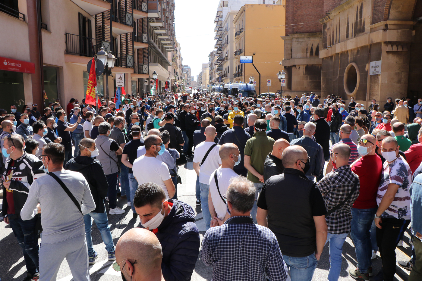 A Taranto scendono in strada, foto Ap, i lavoratori messi nuovamente in cassa integrazione dalla Arcelor Mittal, il colosso franco indiano che sembra intenzionato a non continuare nell’impegno assunto con gli amministratori dell’Ilva.
