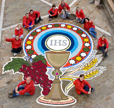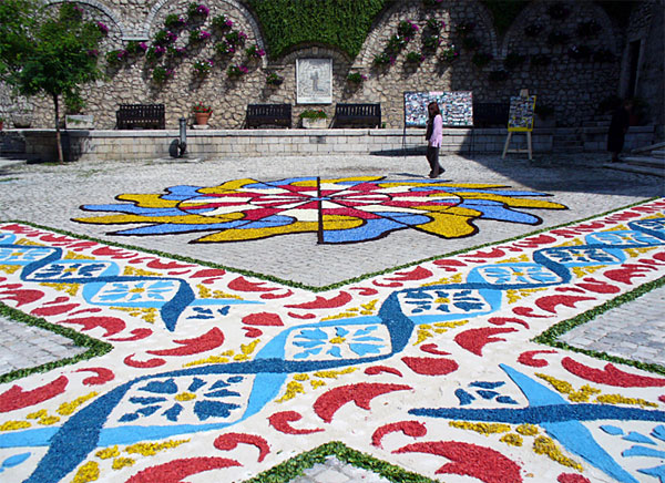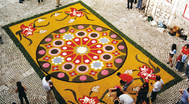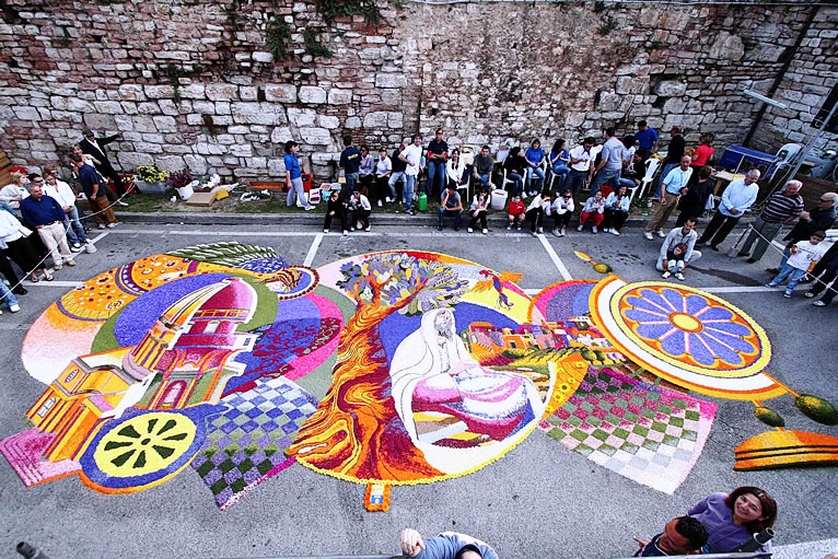 L'Infiorata consiste nella realizzazione di tappeti di fiori per lo più in occasione della festività cattolica del Corpus Domini.