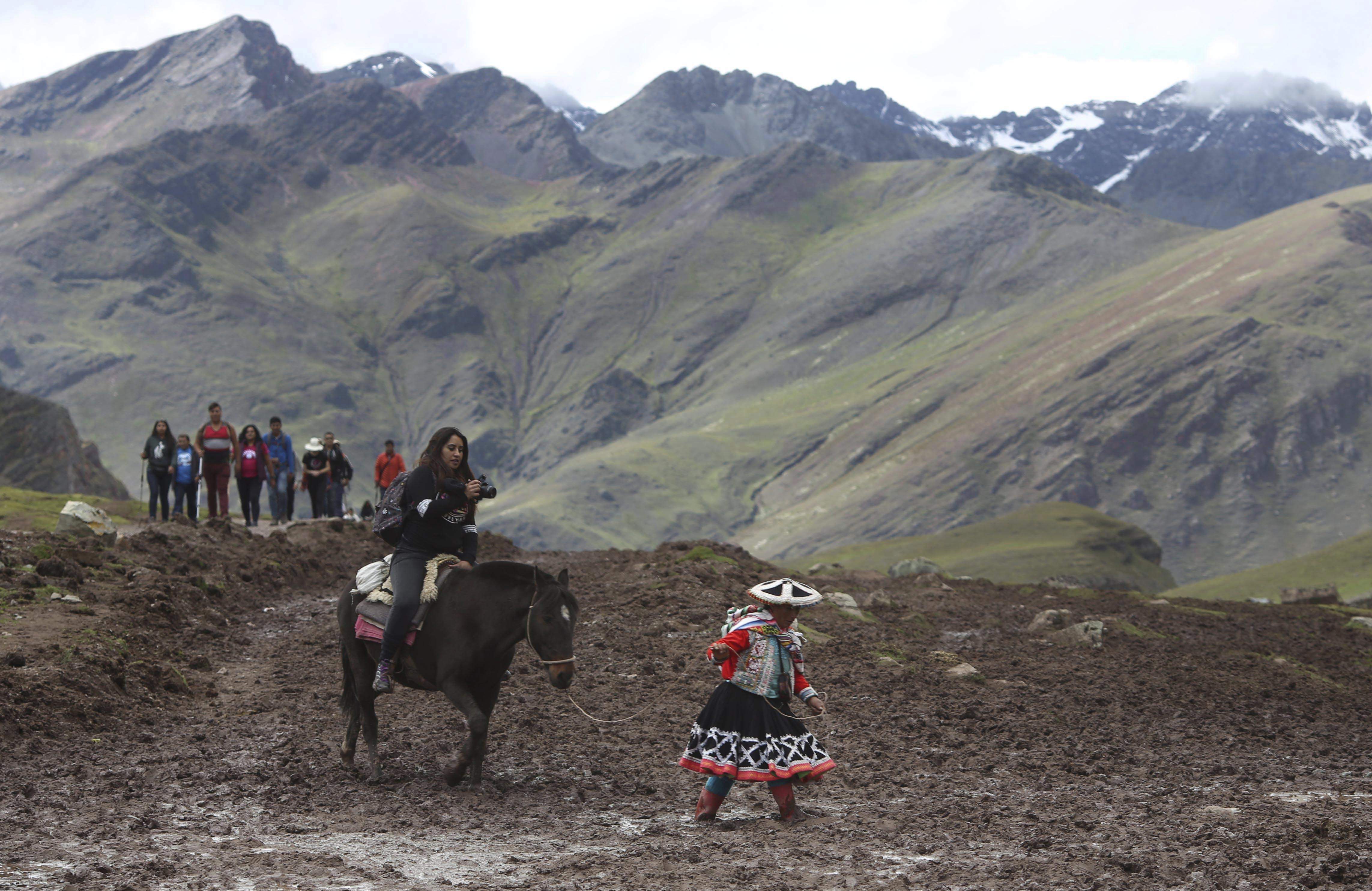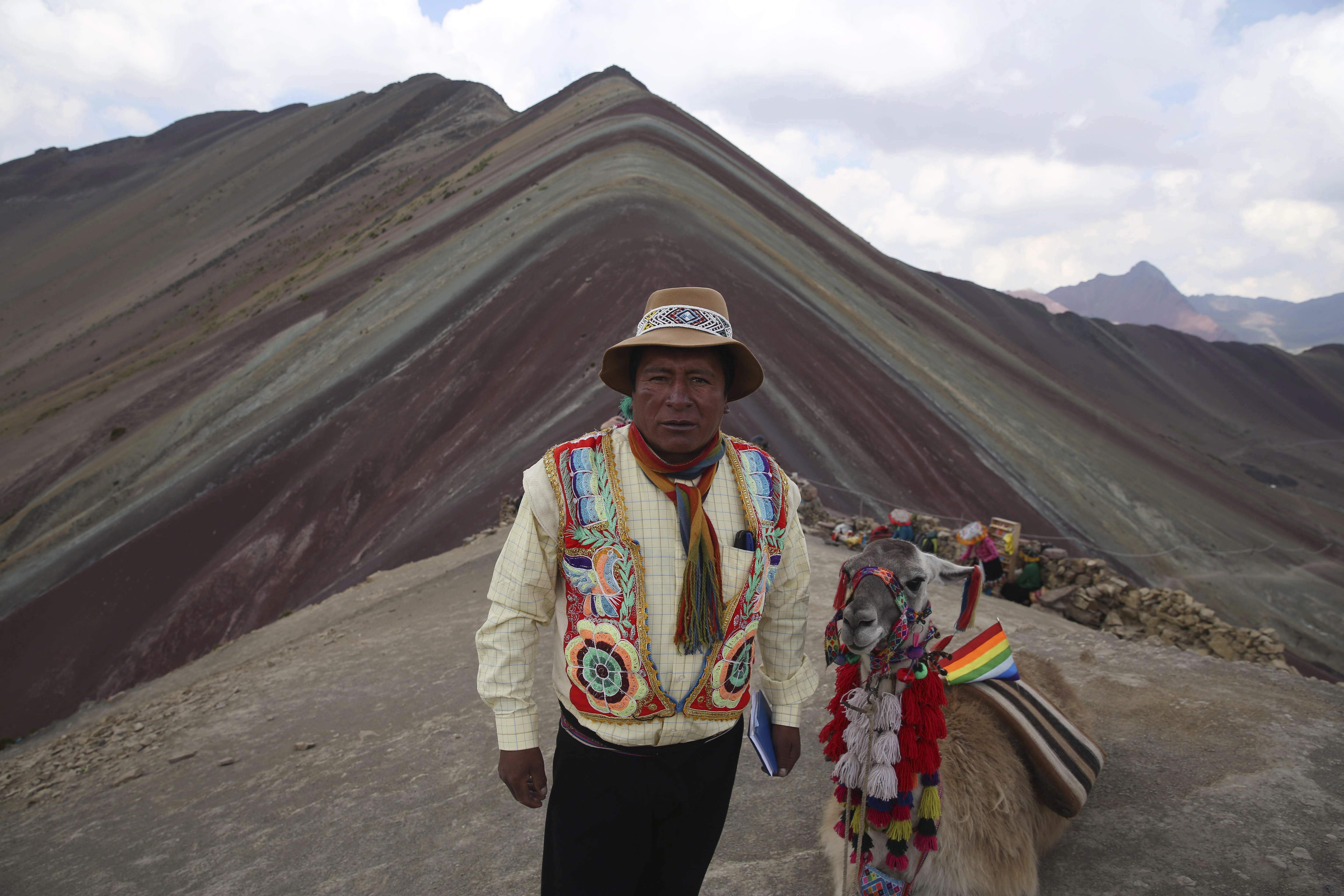 I turisti restano spesso senza fiato mentre salgono per due ore al picco di 5.000 metri di altezza sulle Ande peruviane, ma una volta arrivati sono storditi dalla magica bellezza che si apre davanti a loro. A Pitumarca, in Perù, la popolarità delle montagne arcobaleno attira fino a 1.000 turisti ogni giorno. Questa affluenza ha portato un minimo di ricchezza economica a questa regione remota, popolata da agricoltori alpaca in difficoltà. (AP Photo / Martin Mejia)