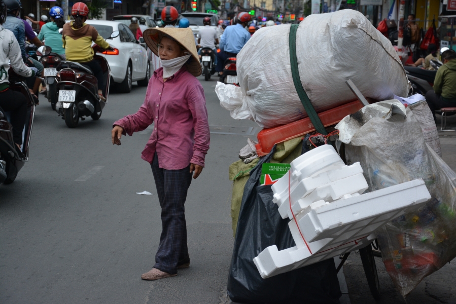 Sono tante e sono belle: qualcuno dice più di 6 mila. Lavorano dalle 4 del mattino alle 22 per pochi soldi al giorno: sono le spazzine “non ufficiali” di Ho Chi Minh city; sono nonne (in Vietnam ci si sposa presto), mamme e anche giovani ragazze che raccolgono, trasportano e rivendono la spazzatura riciclabile abbandonata per strada (ferro, carta, lattine di alluminio, sedie, tavoli…) su biciclette scassate; a Ho Chi Minh city le incontro in ogni strada e lo stesso accade nelle altre città del Vietnam.