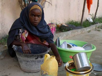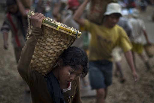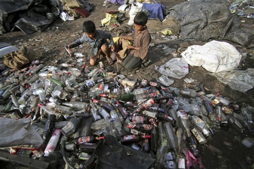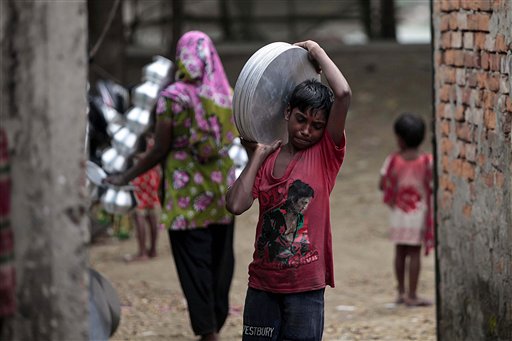 Oggi ricorre la Giornata mondiale contro la schiavità infantile, ma sono ancora tanti i piccoli che, in tanti Paesi, per esigenze familiari e sociali, sono costretti ad eseguire lavori duri e pericolosi. Nelle foto Ap: una bambina trasporta pietre da una cava in Myanmar; piccoli lavoratori raccolgono bottiglie di vetro in India; un ragazzino trasporta pezzi di alluminio in Banglades; una bambina al lavoro in un laboratorio di ceramica in Egitto; un ragazzino guida un trattore negli Stati Uniti; una piccola collaboratrice domestica pulisce piatti e utensili nella casa dove lavora in Somalia.