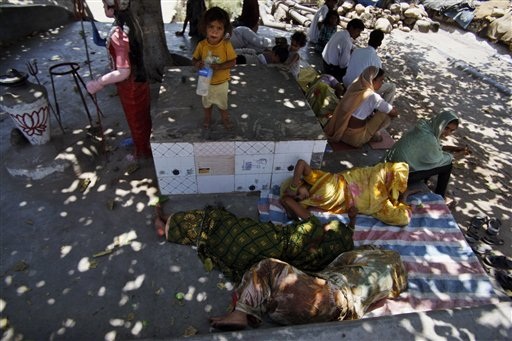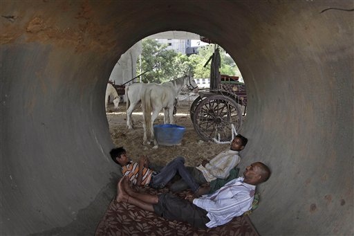 Sono ormai giorni che la temperatura temperatura in India si aggira intorno ai 45 gradi Celsius. La popolazione sta boccheggiando e ognuno cerca di rinfrescarsi o di trovare riparo dove può (foto Ap).