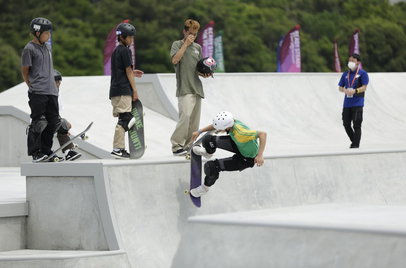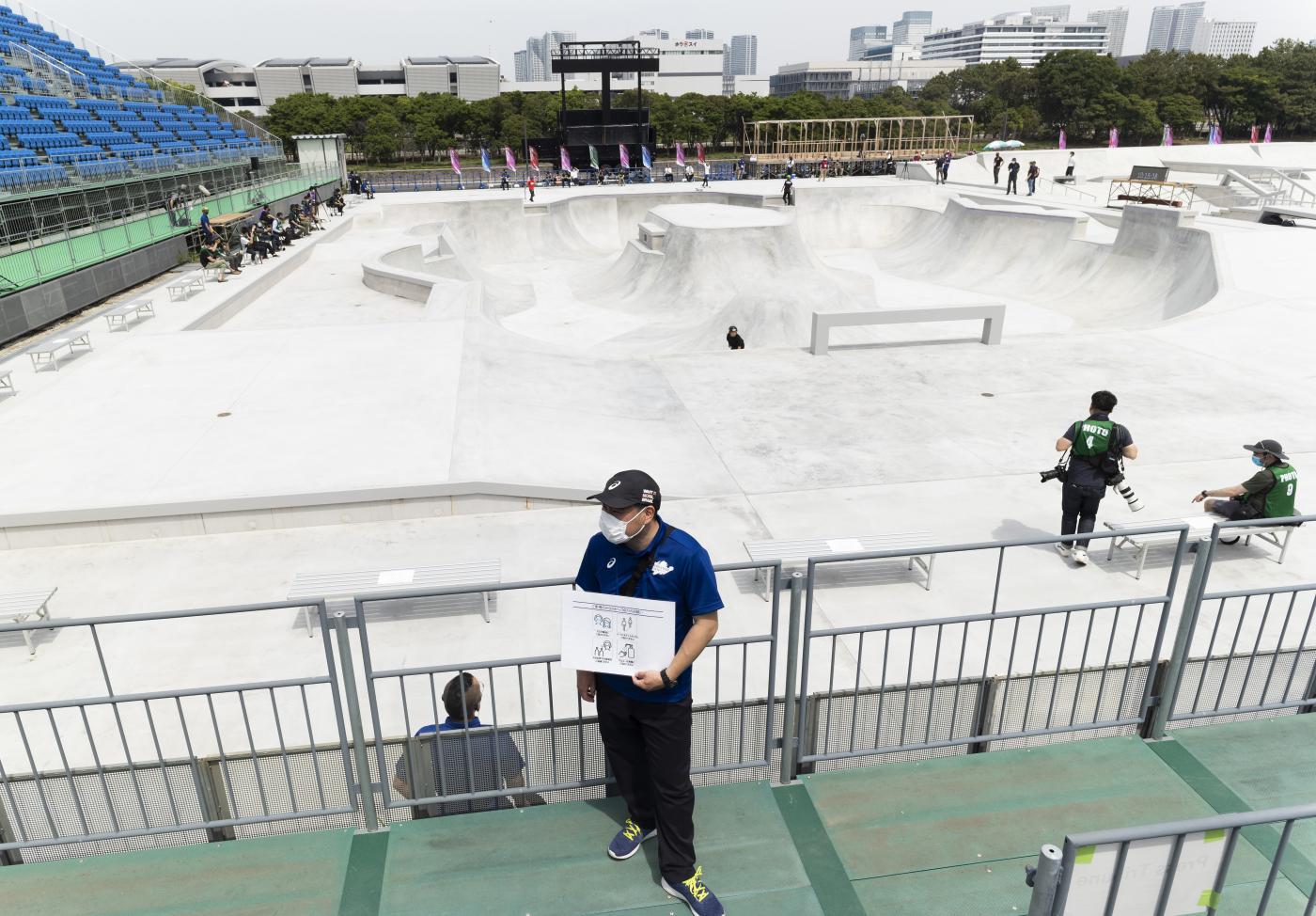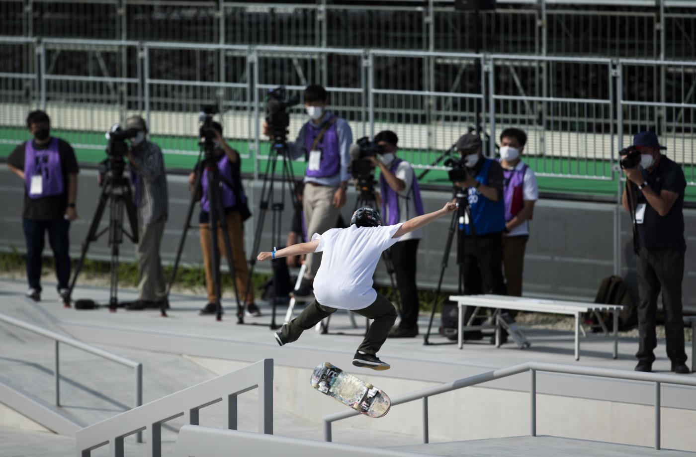 L’evento “Ready Steady Tokyo – Skateboarding” ha costituito la prova generale per la categoria sportiva che per la prima volta nella storia parteciperà alle Olimpiadi. Hanno preso parte all’evento di prova solo gli skateboarder giapponesi. Alle Olimpiadi di Tokyo lo skateboard sarà presente con due discipline: lo street e il park. Lo street si disputa su un percorso che ricrea appunto un contesto di una strada urbana con scalinate, corrimano, panchine e rampe. Il park, invece, si svolge in uno skatepark, ovvero una struttura con rampe di varia altezza e pendenza. (foto Ap)